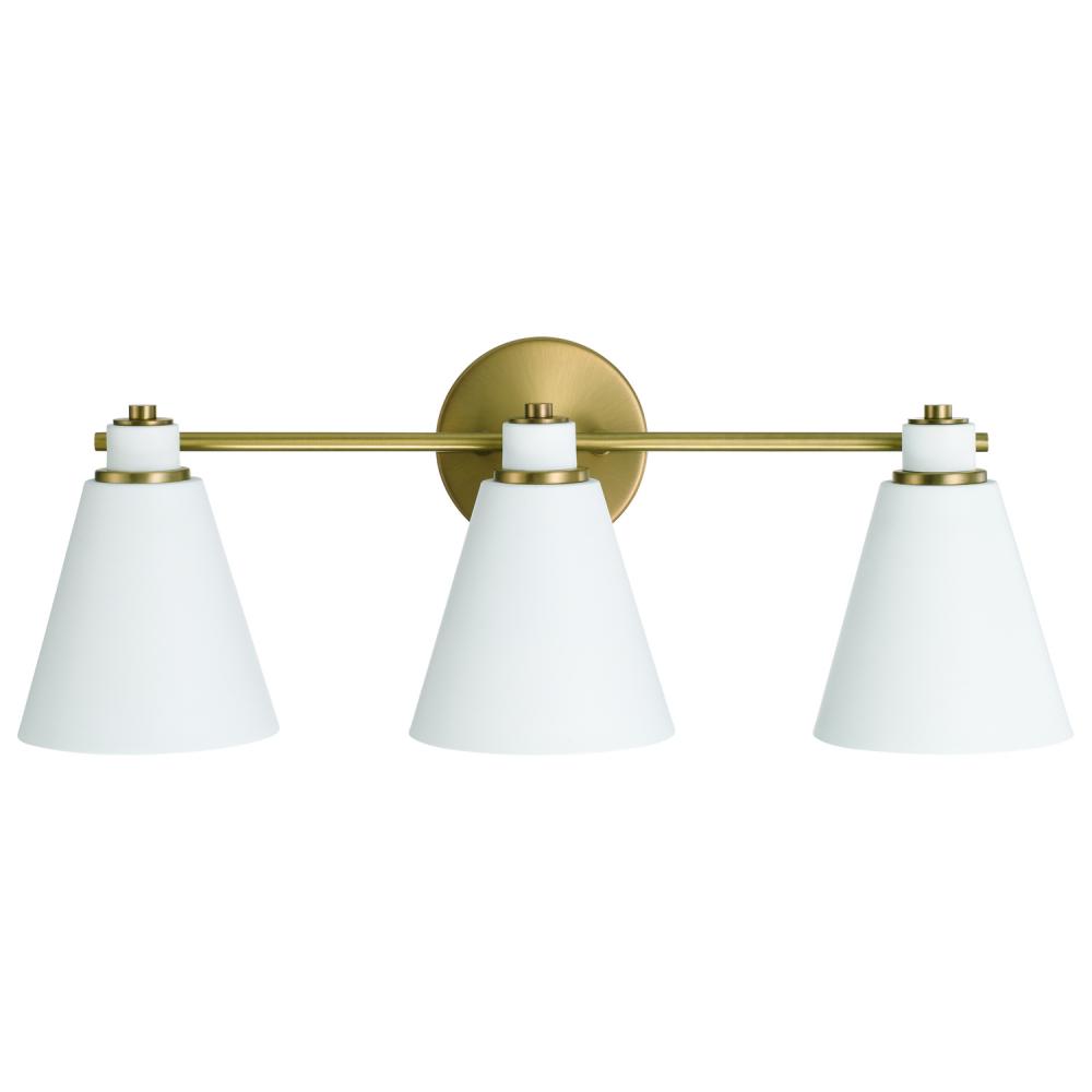 24"W x 9"H 3-Light Vanity in Aged Brass and White Metal Shade with White Interior
