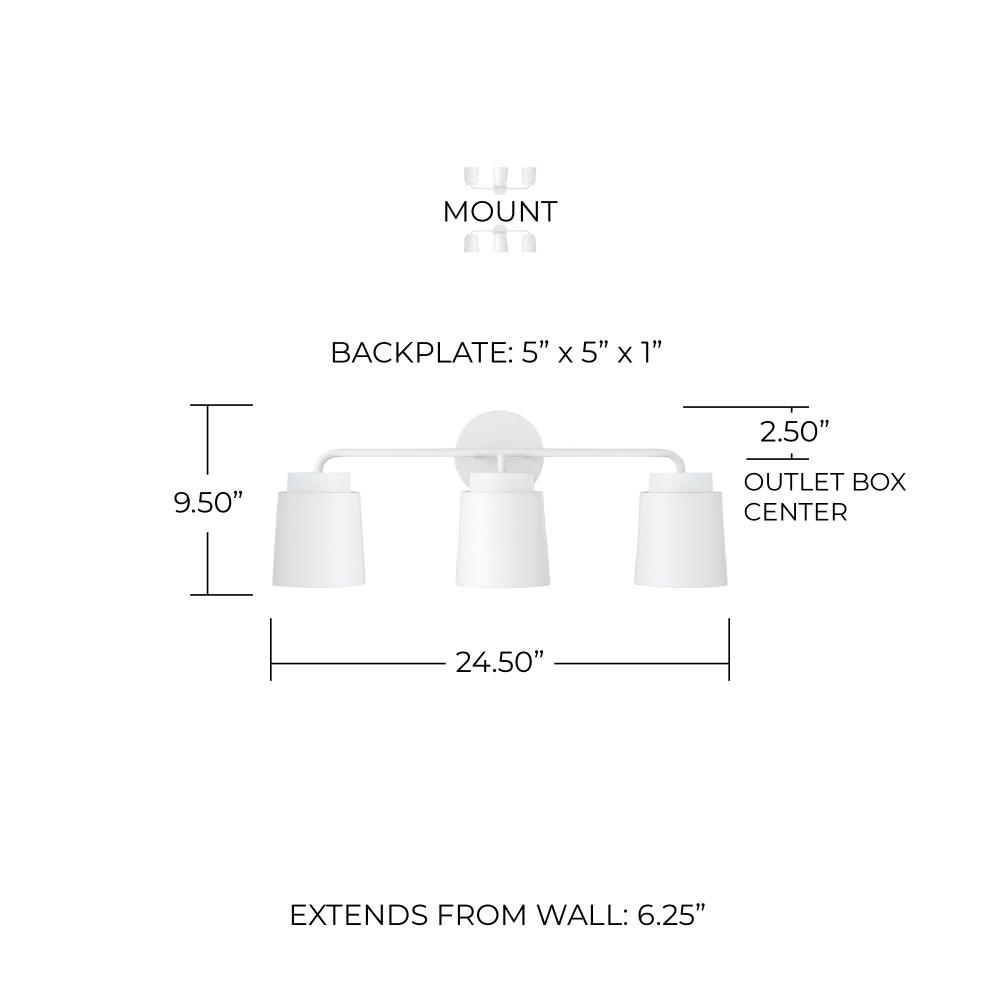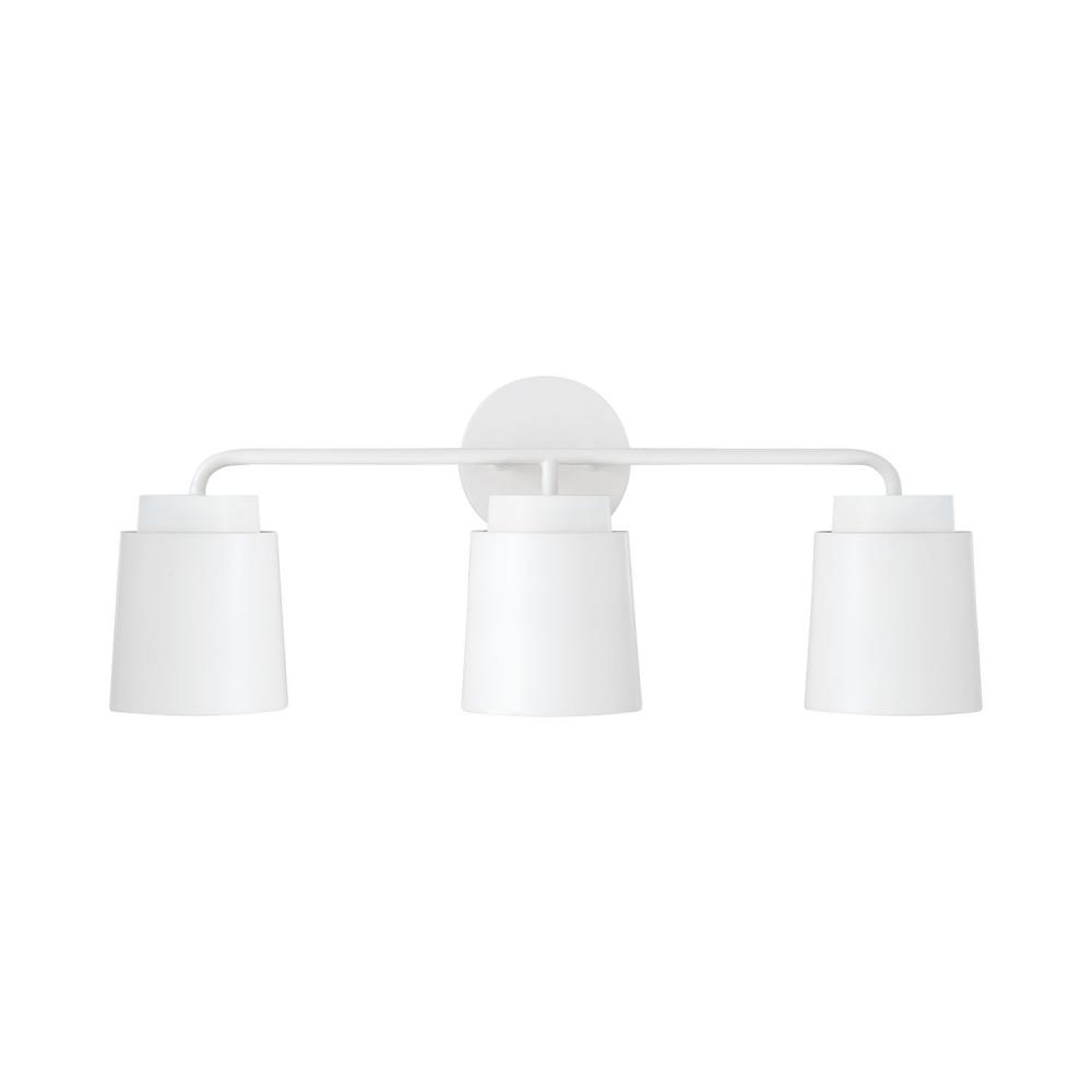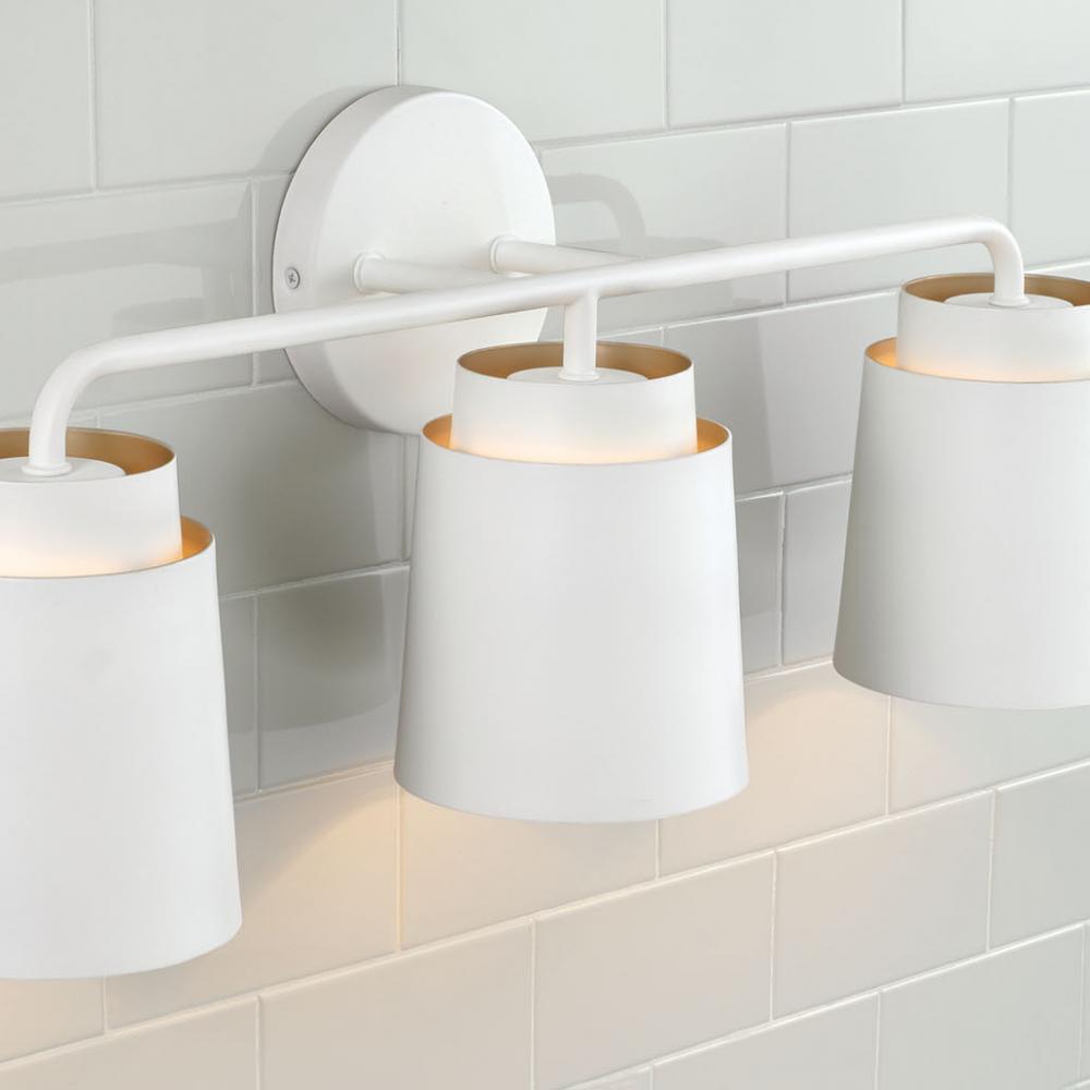 Tapered and concise, the Pratt 3-Light Vanity brings sophisticated style to any powder room. Finished in Matte White, the tiered metal shades create a sleek aesthetic, while the inner Soft Gold finish invites intriguing dimension.