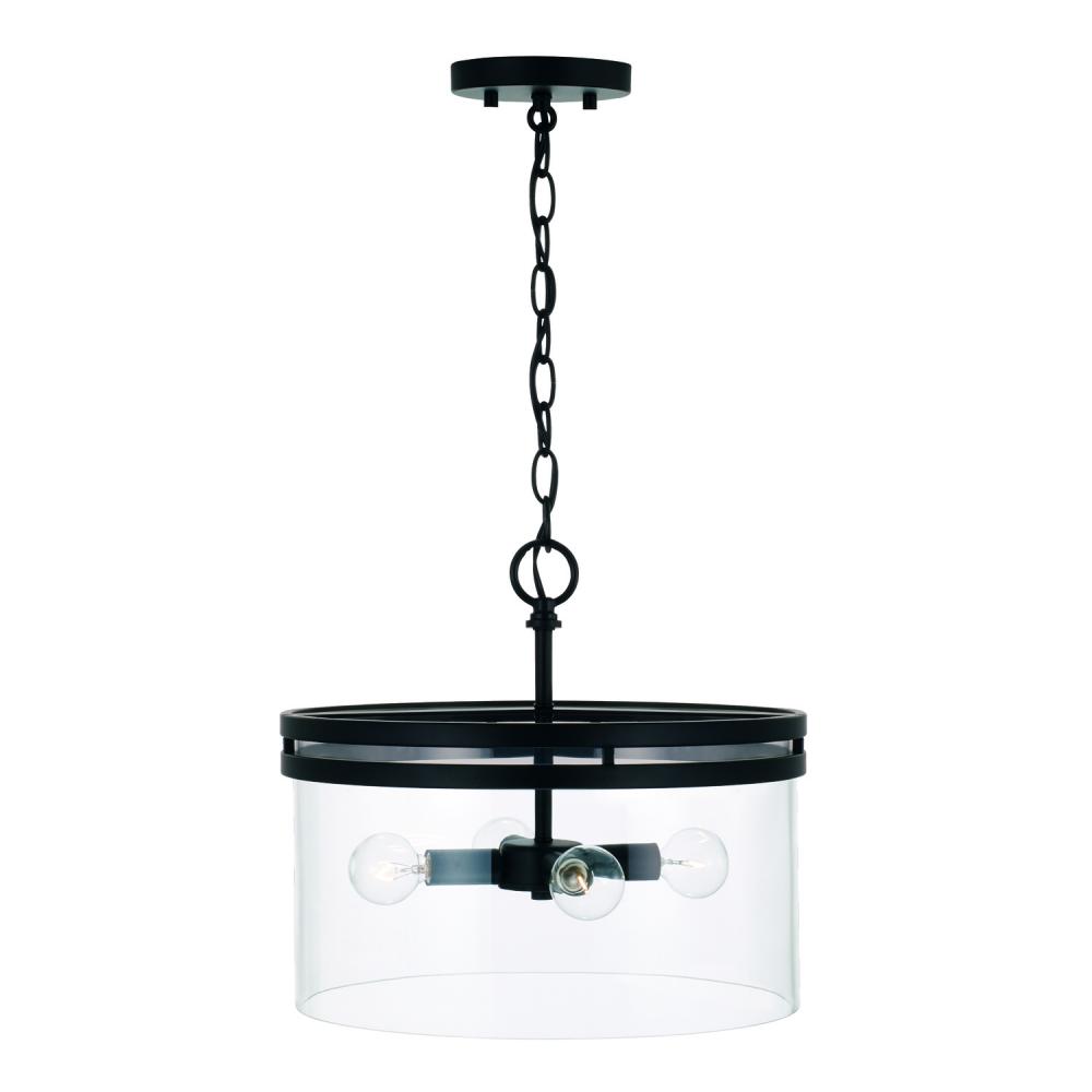 14.5"W x 12.75"H 4-Light Dual Mount Pendant or Semi-Flush in Matte Black with Clear Glass