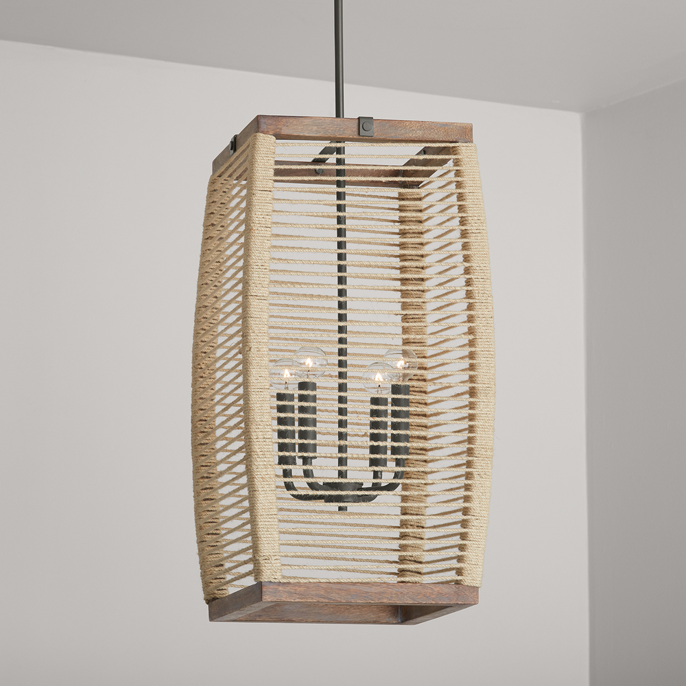 Rustic farmhouse flair meets Scandinavian simplicity with the 4-Light Foyer. Intricately hand-woven jute rope adds a layer of texture and visual interest to the handcrafted finish.