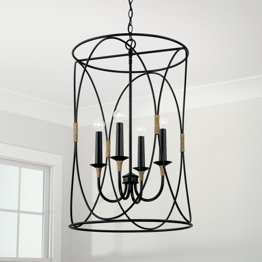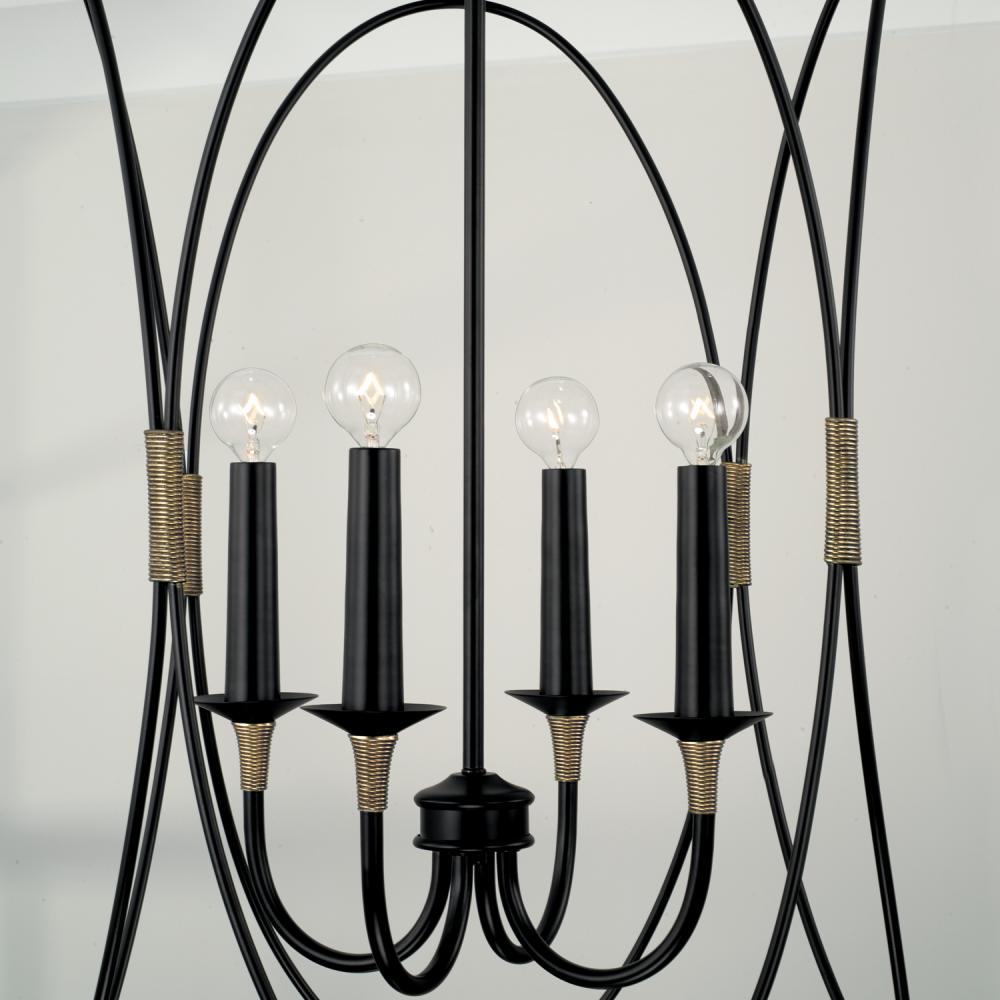 Designer details and circular forms dial up the drama with the Amara Foyer. The wrapped accent in a brass tone adds a layer of unexpected dimension and the Matte Black finish punctuates the personality of any space.