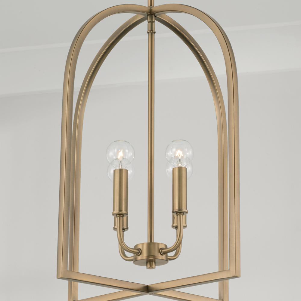 16"W x 21"H 4-Light Arched Foyer Pendant in Aged Brass