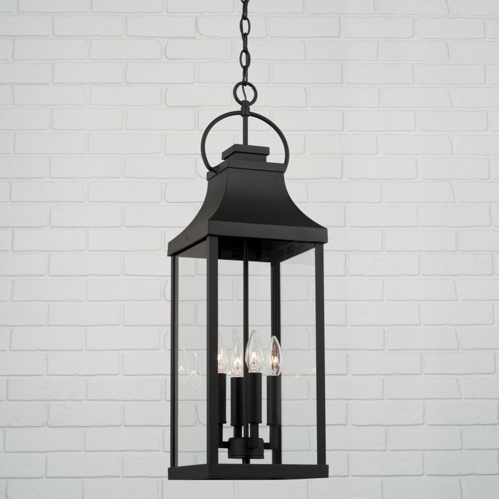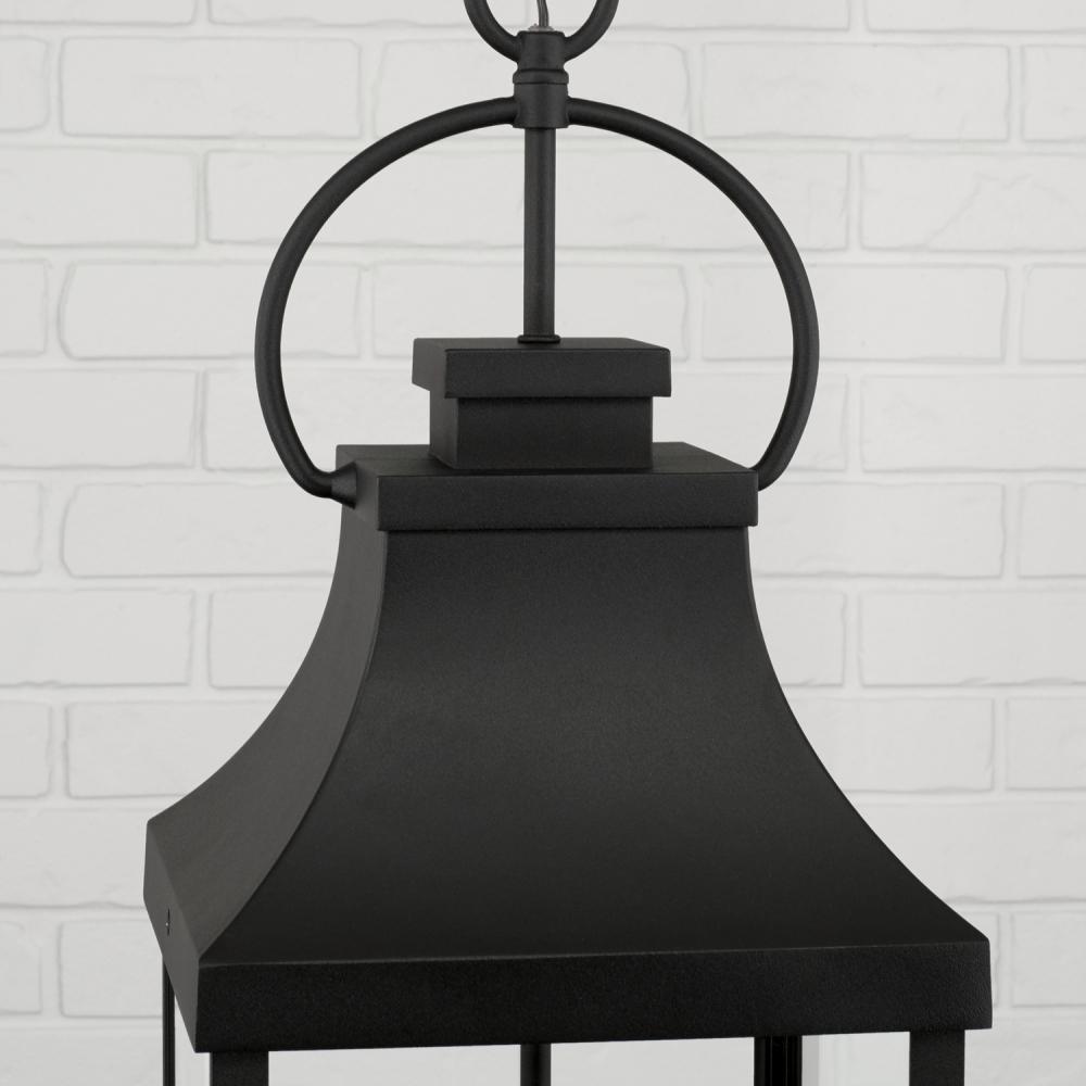 Transitional meets modern with the Bradford Hanging Lantern. The bold lines and an oversized ring in a Black finish adds classic curb appeal to your home. Part of our Rain or Shine Collection and backed by our five-year warranty.