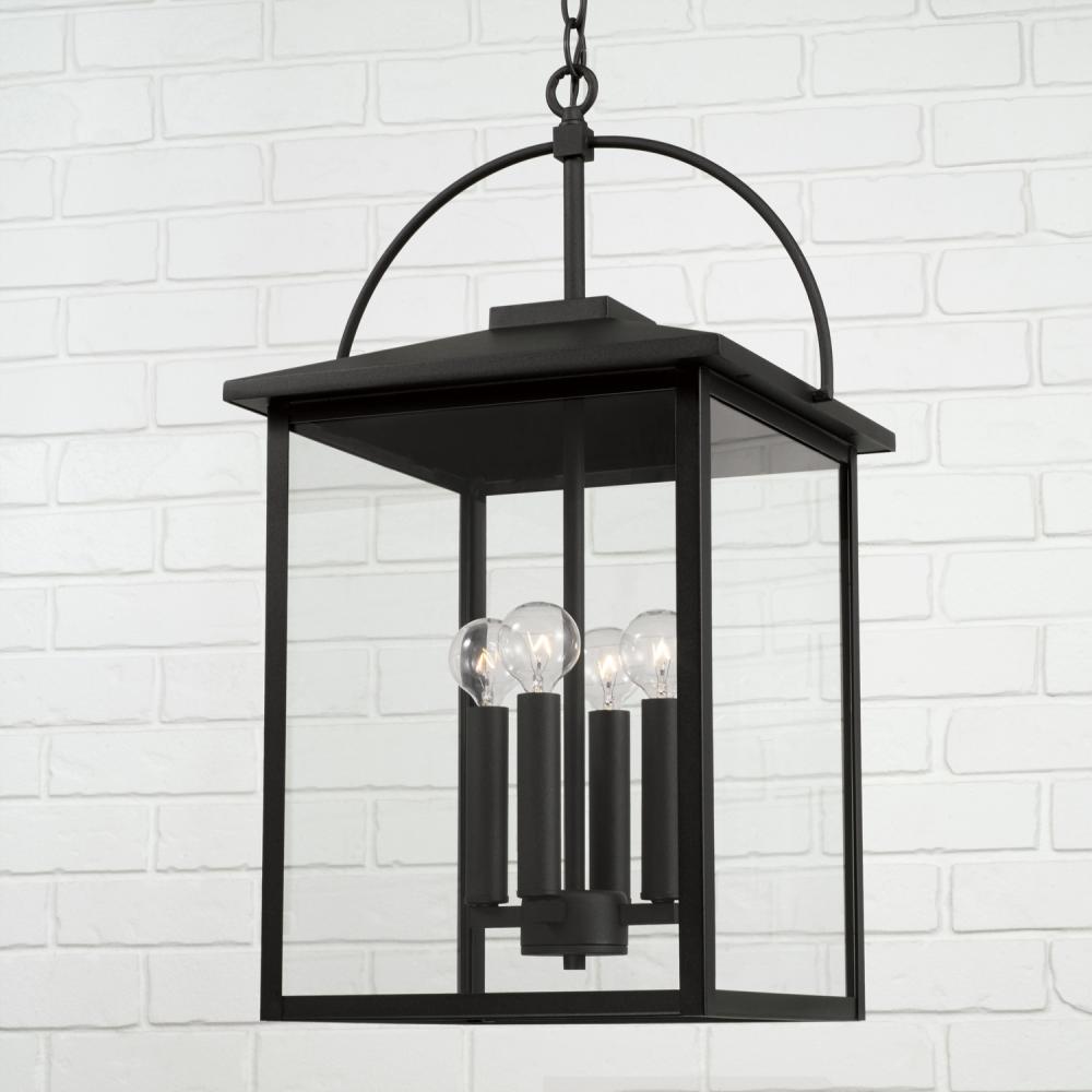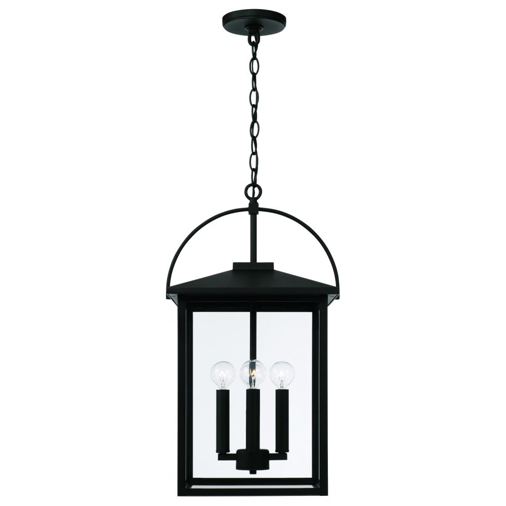 13.25"W x 23.5"H 4-Light Outdoor Hanging Lantern in Black with Clear Glass