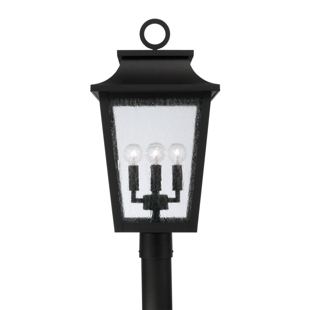 Take the charm outside with the Chandler Outdoor Post Lantern. The Black finish perfectly accents the curved lines and ring detail atop the tapered frame, while the Antiqued Glass creates a unique glow. Part of our Rain or Shine Series and backed by our five-year warranty.