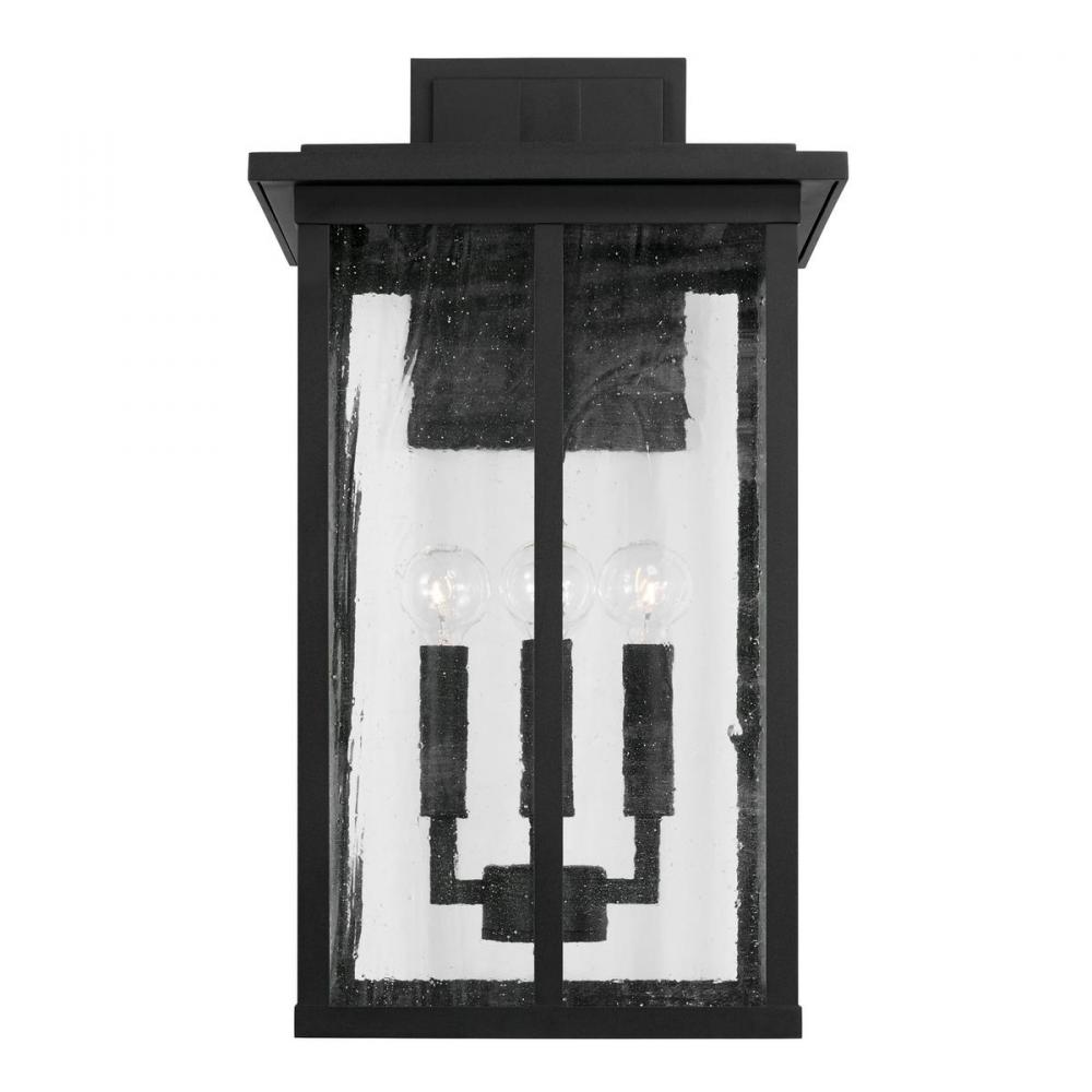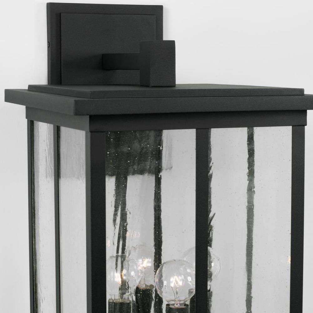 Clean lines and framed edges in the Barrett Collection give a graphic punch without being too overpowering. The textured water glass diffuses light and emits a warm glow for your porch or patio. These fixtures are part of our Rain or Shine Collection and are backed by our five-year warranty.