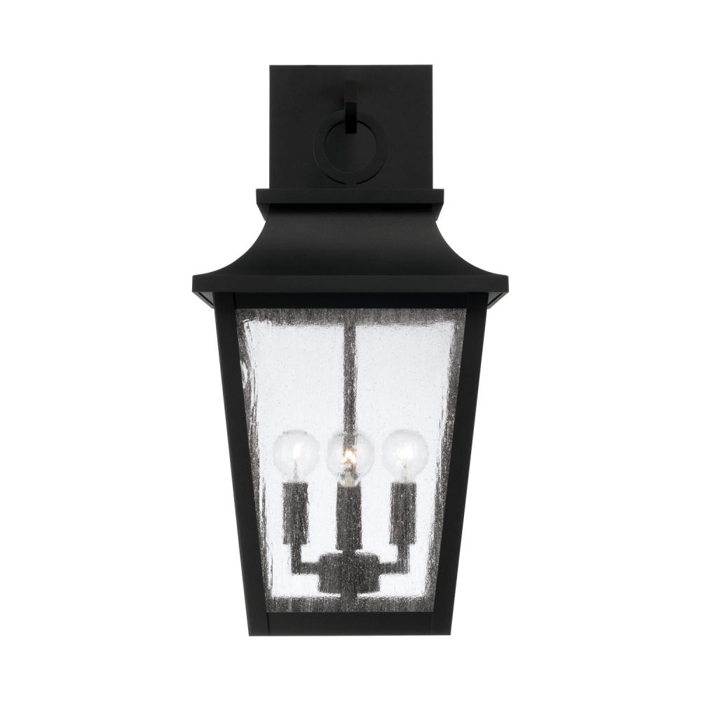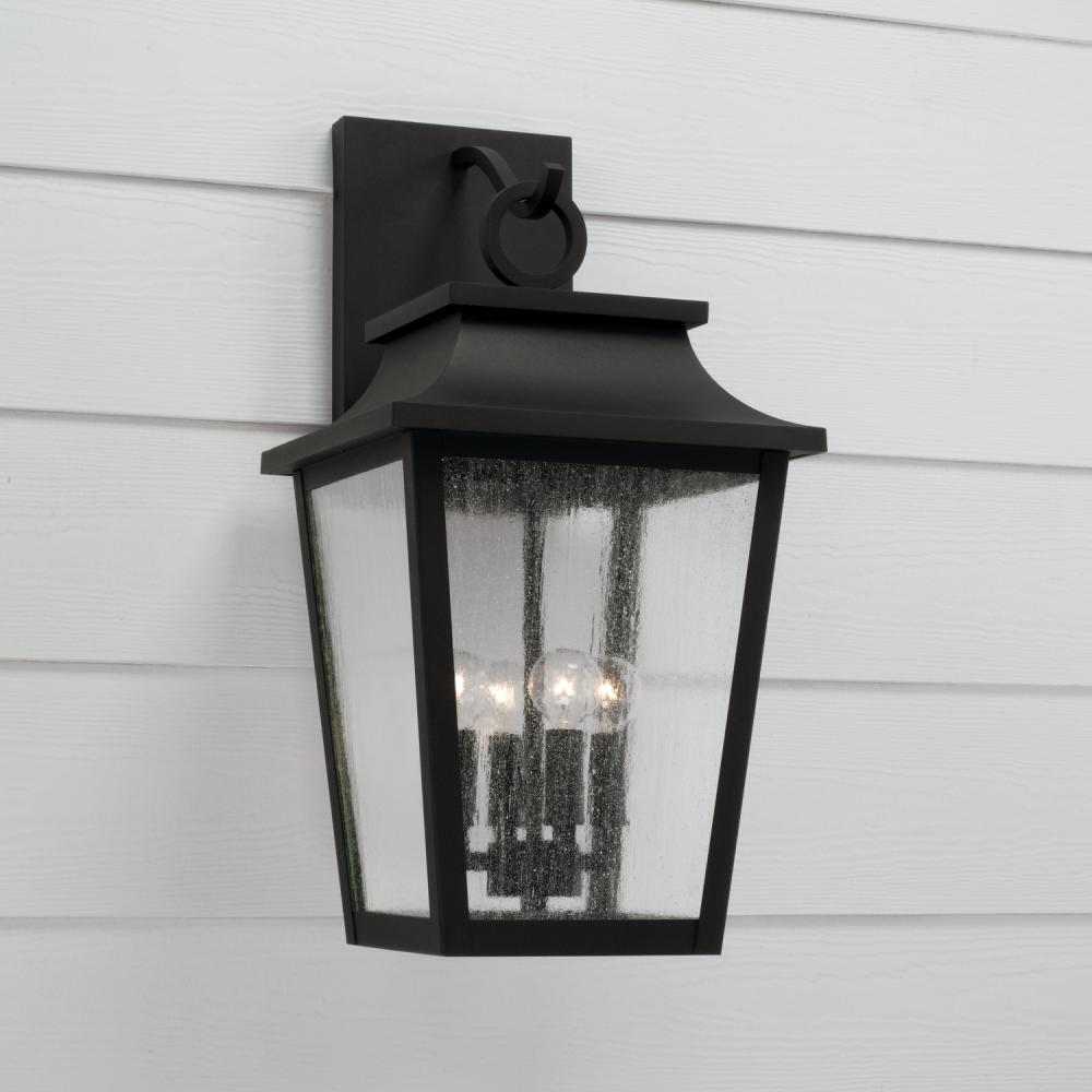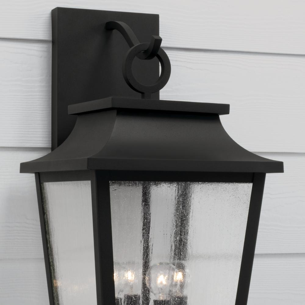 Take the charm outside with the Chandler Outdoor Wall Lantern. The Black finish perfectly accents the curved lines and ring detail atop the tapered frame, while the Antiqued Glass creates a unique glow. Part of our Rain or Shine Series and backed by our five-year warranty.