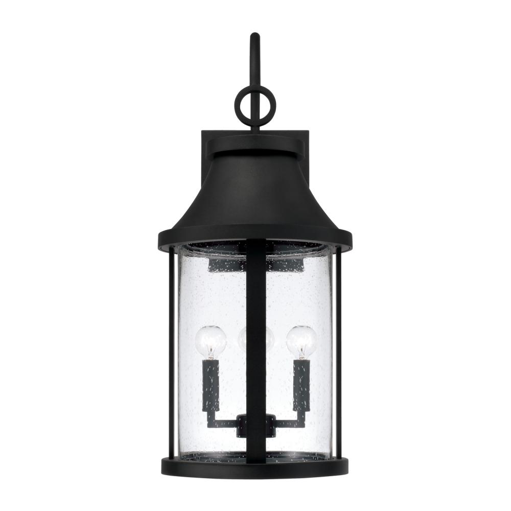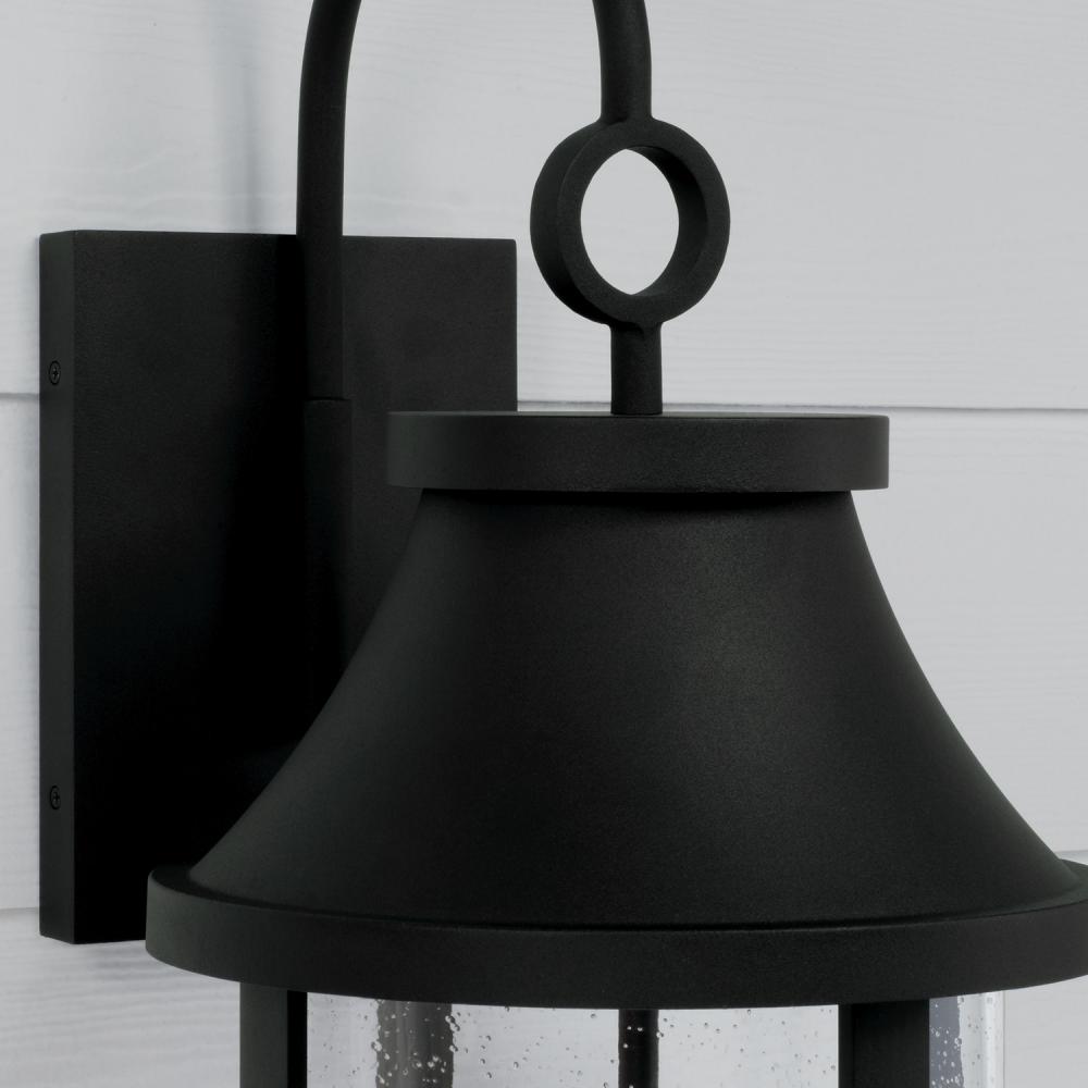 Circular forms and seeded glass create the Bridger Wall Lantern. The curved cap lines and ring detail on top bring all-around charming style, rounded out by our signature Black finish for a look that punctuates any outdoor space. Part of our Rain or Shine Series and backed by our five-year warranty.