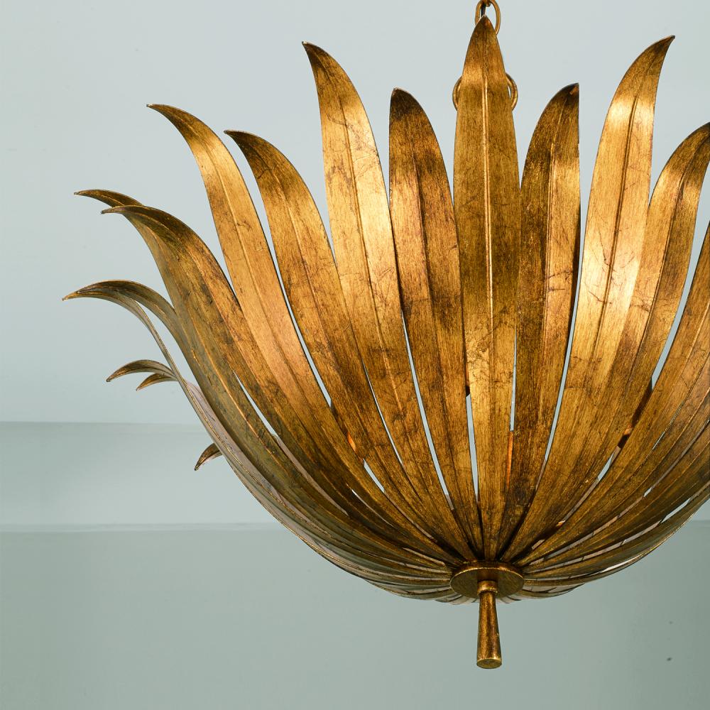 24"W x 18.75"H 4-Light Botanical Pendant in Antique Gold