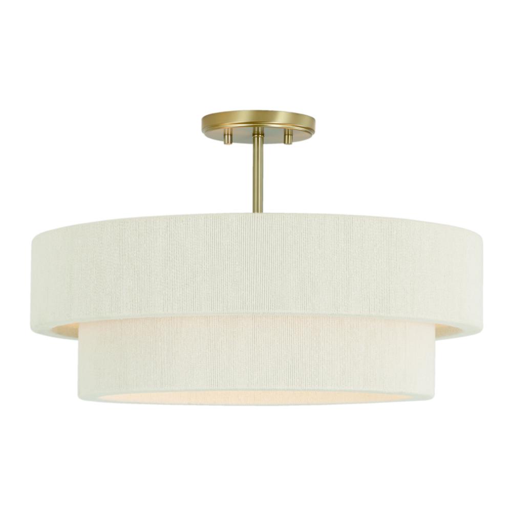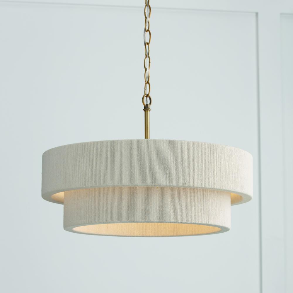 20"W x 13"H 4-Light Dual Mount Pendant or Semi-Flush in Matte Brass with Bleached Natural Rope