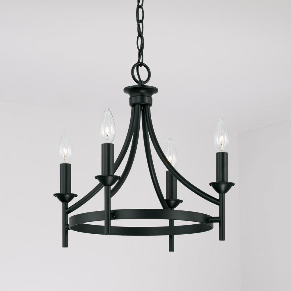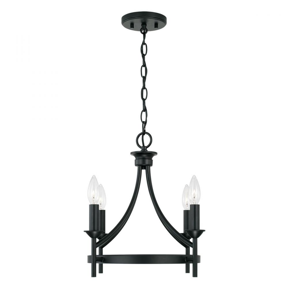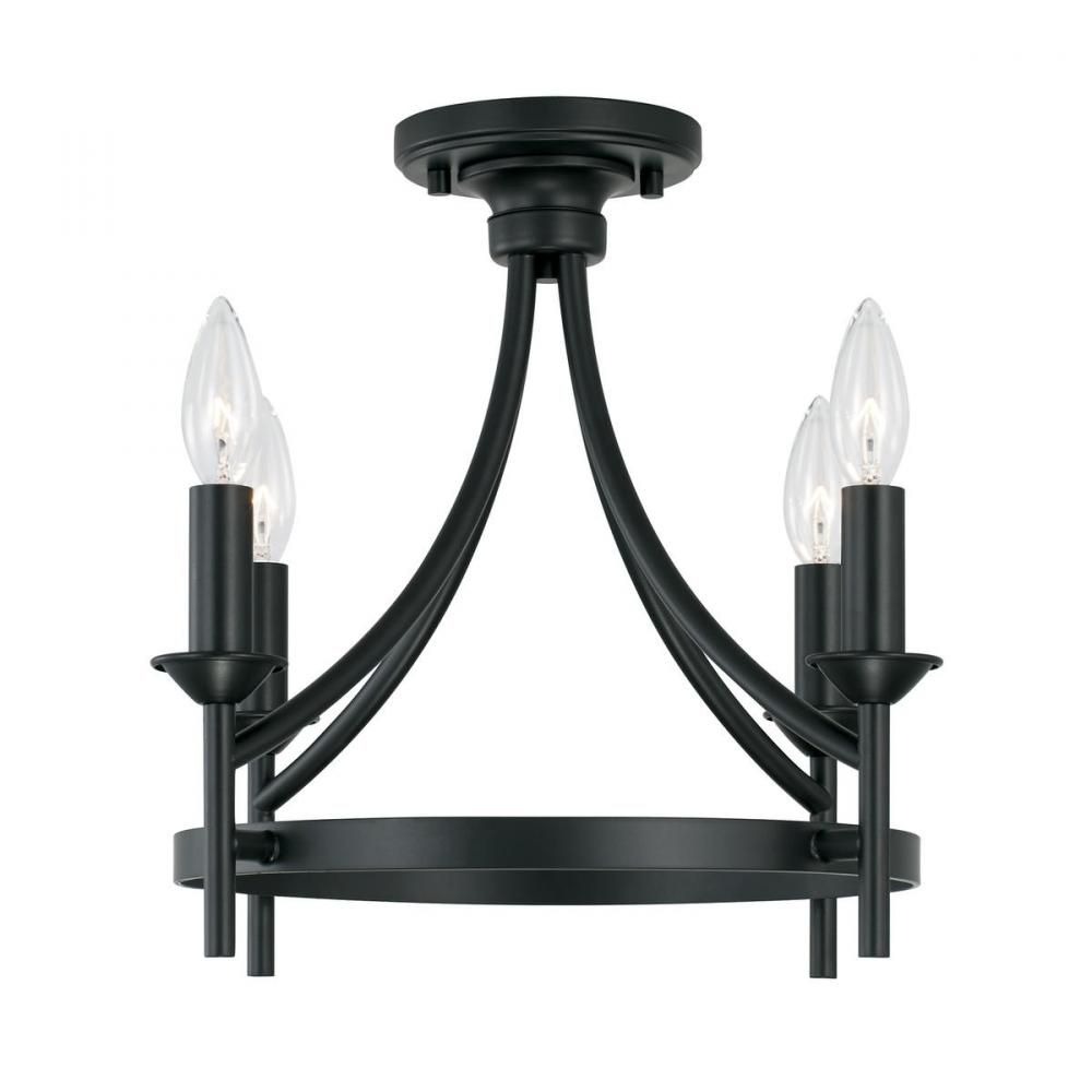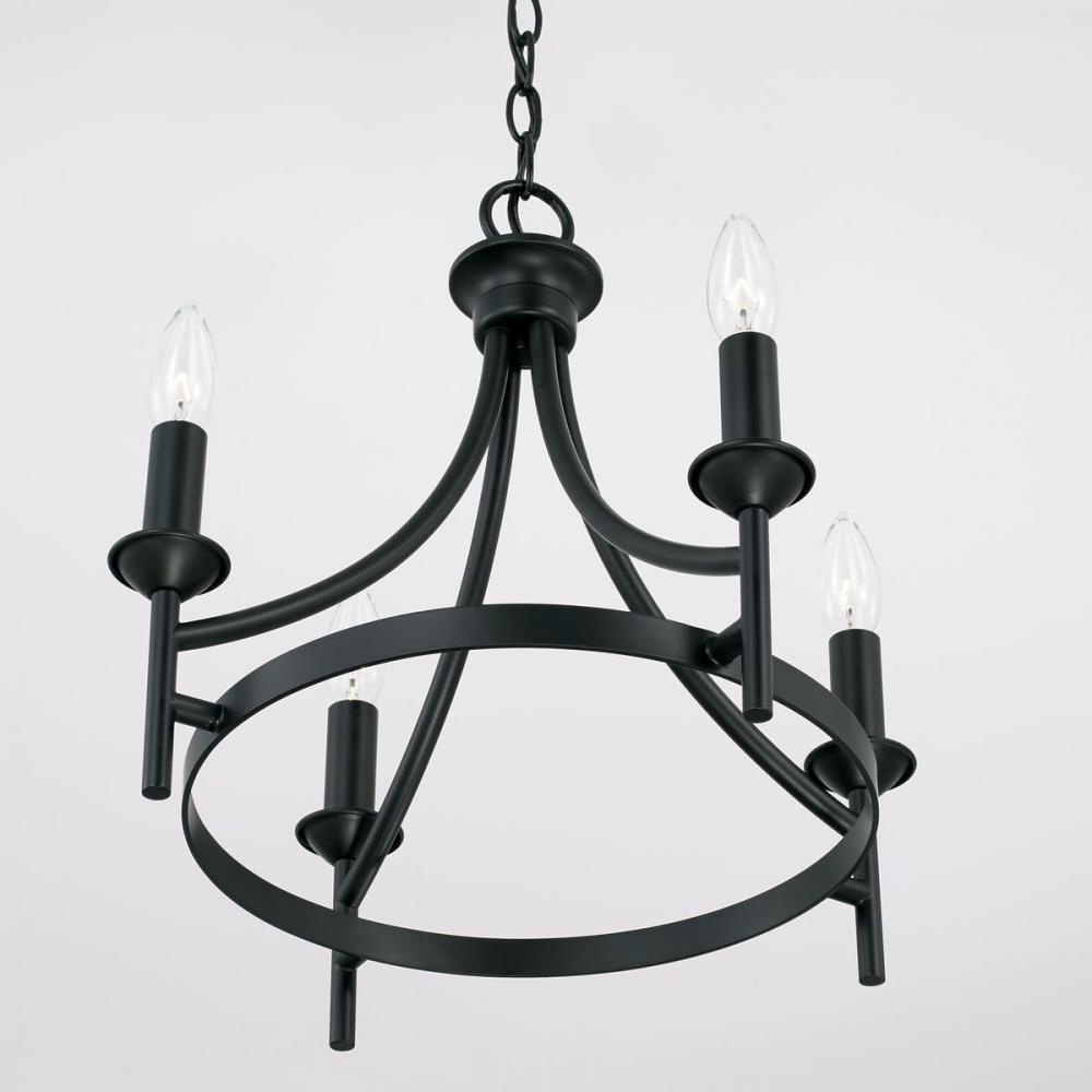 The sharp lines and artistic arches of the Peyton 4-Light Dual Mount Pendant are timelessly transitional. The muted tone of the Matte Black finish allows the silhouette to take center stage. This fixture can be used as a Semi-Flush or as a Pendant.