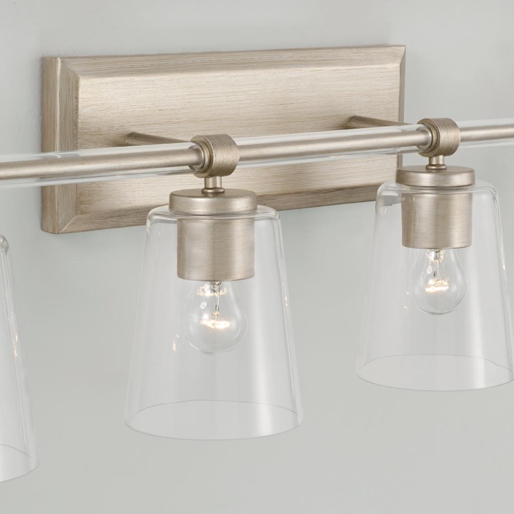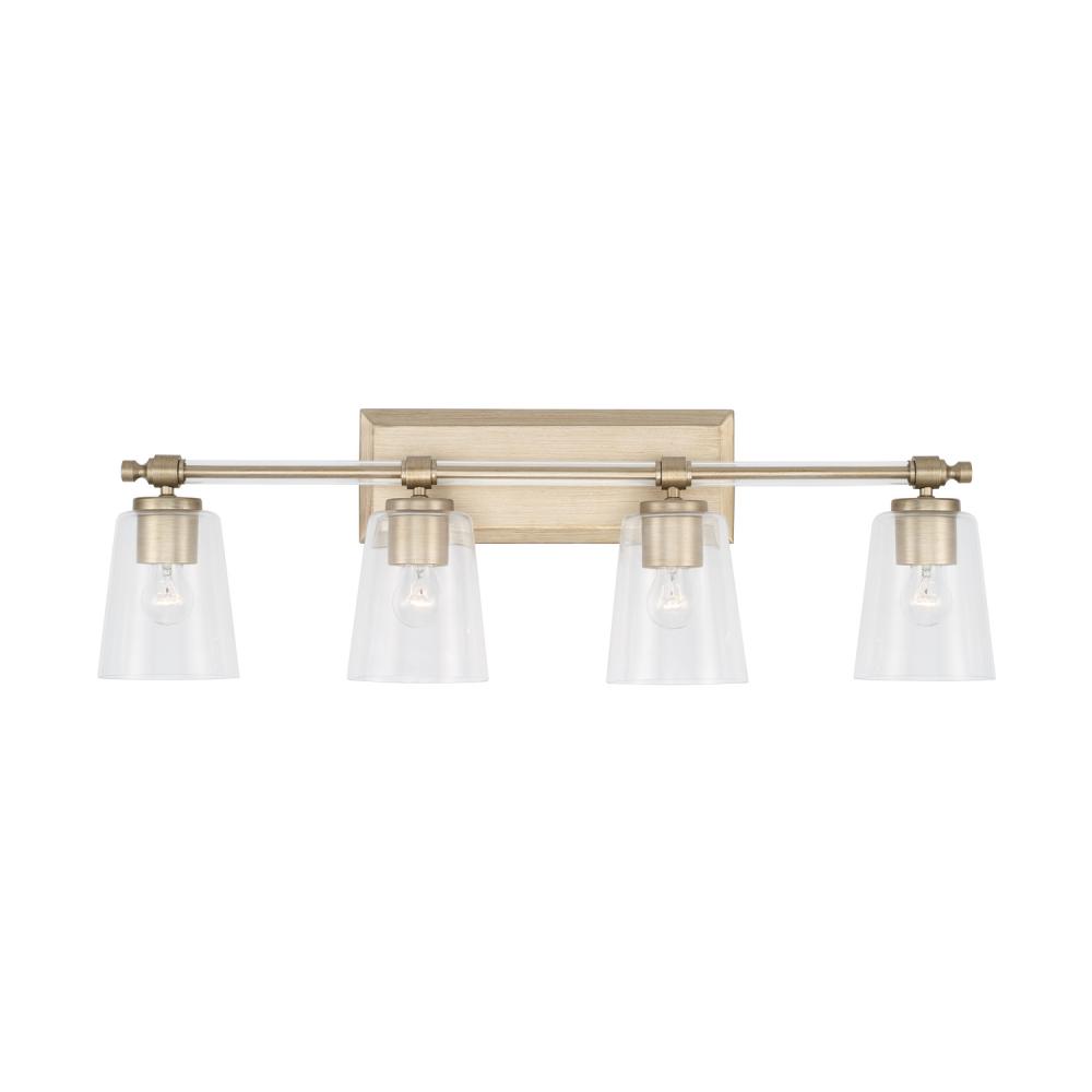 Simple and stunning, the Breigh 4-Light Vanity adds understated glamour to any bathroom. The shimmer of the Brushed Champagne finish and the shine of the acrylic rod and bobeche create a look of luxe and sophistication. Also available as a 2-Light or 3-Light.