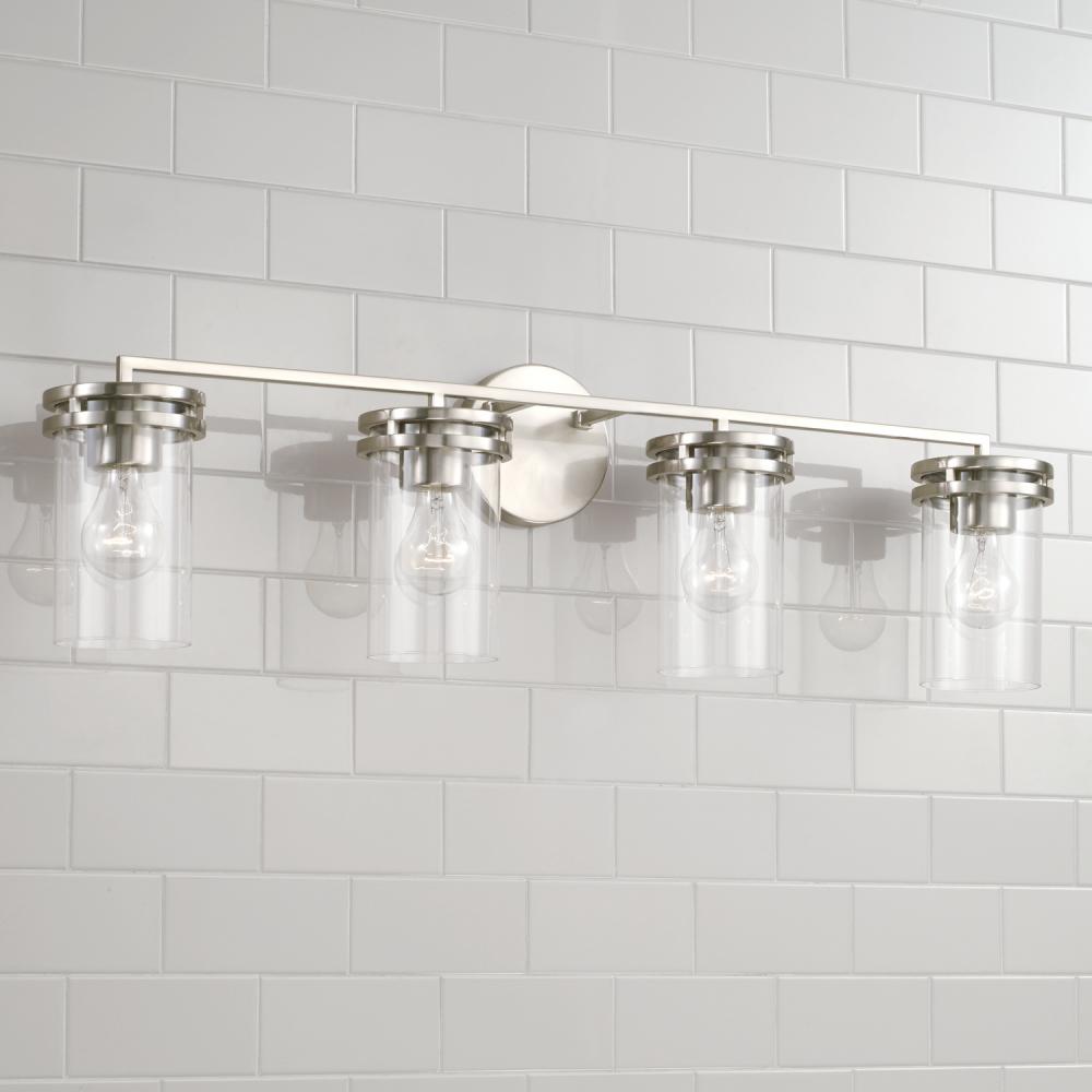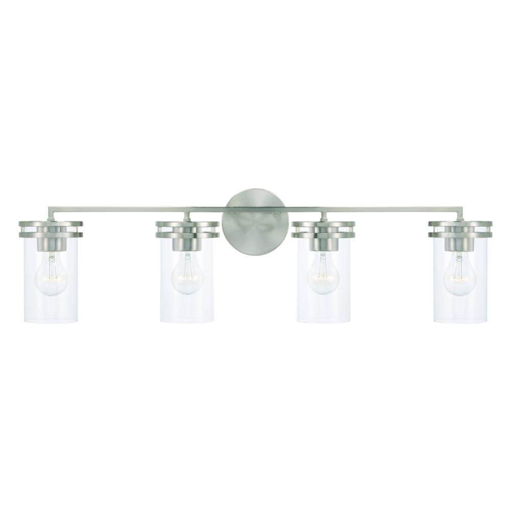 33.5"W x 9.75"H 4-Light Vanity in Brushed Nickel with Clear Glass