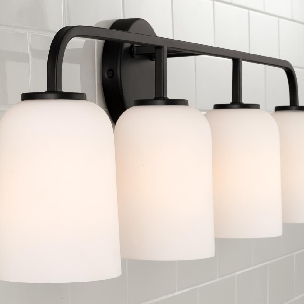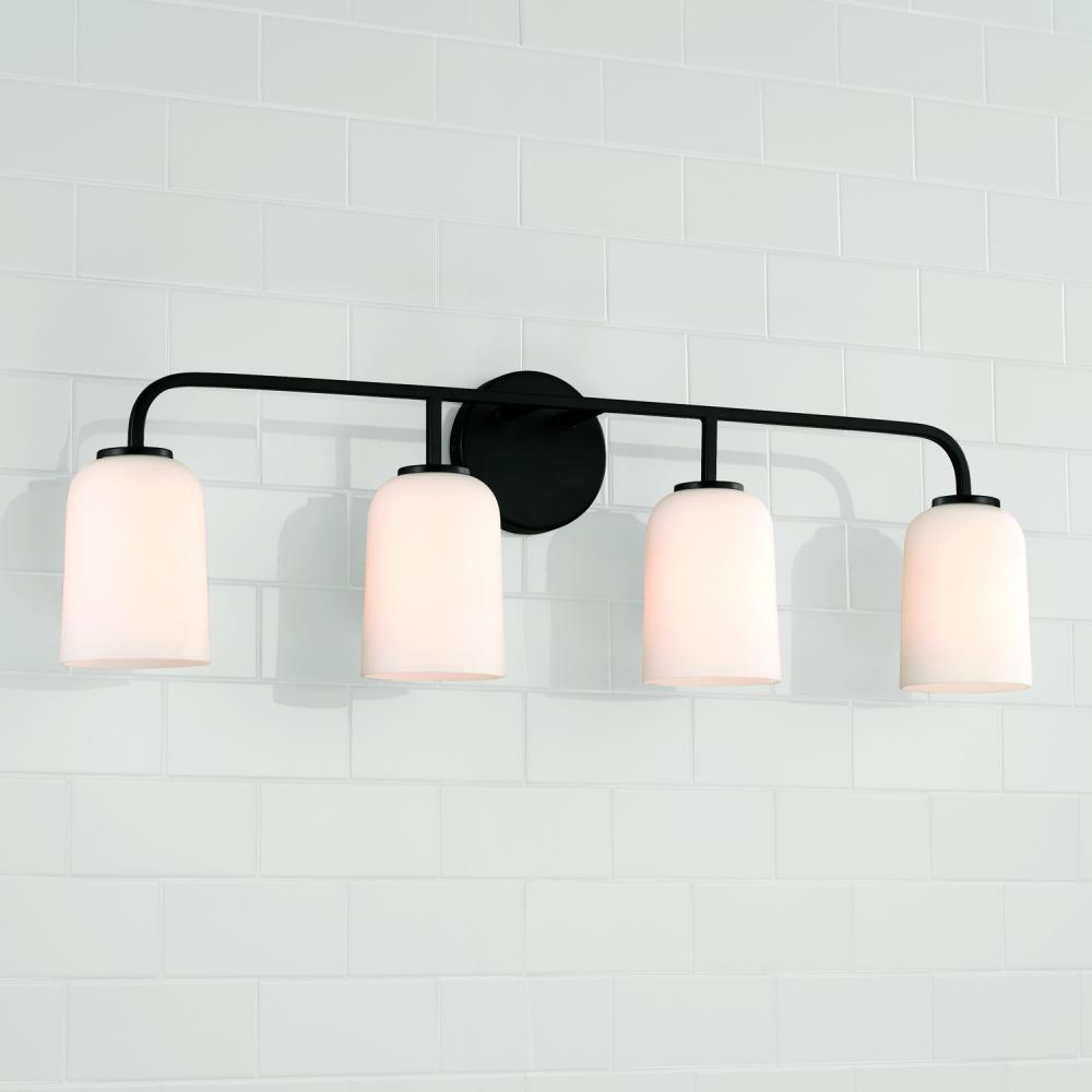 32.25"W x 9.75"H 4-Light Vanity in Matte Black with Soft White Glass