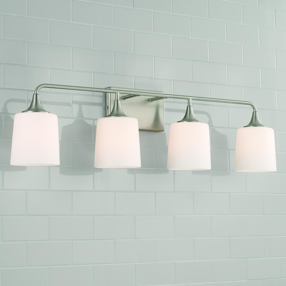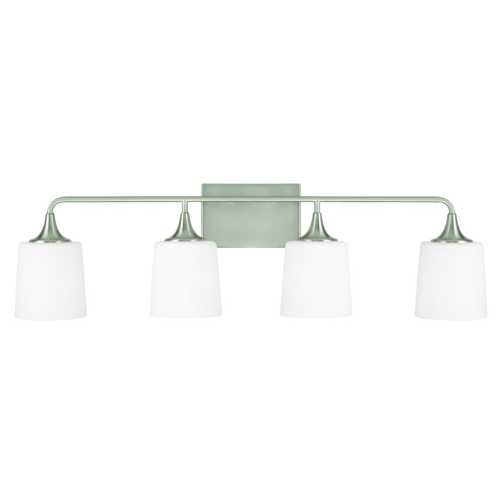 36.75"W x 10.25"H 4-Light Vanity in Brushed Nickel with Soft White Glass