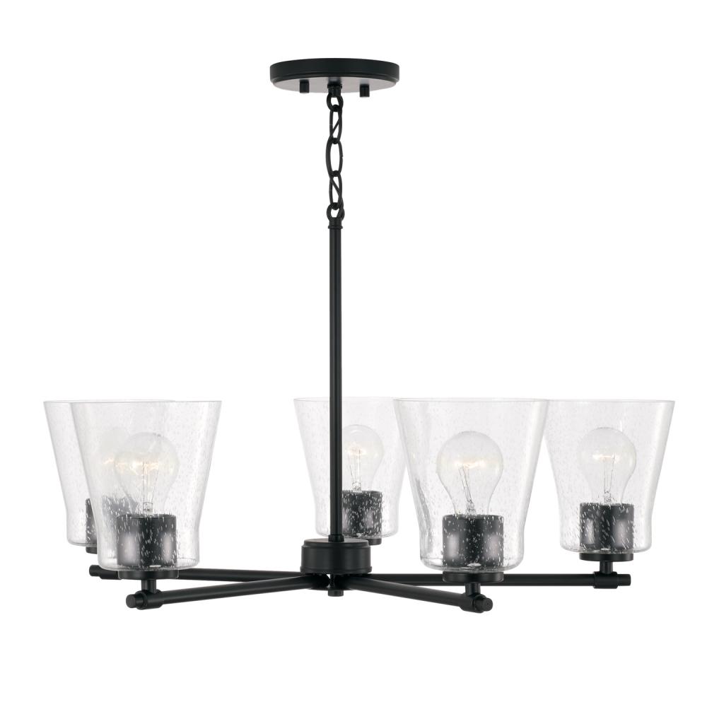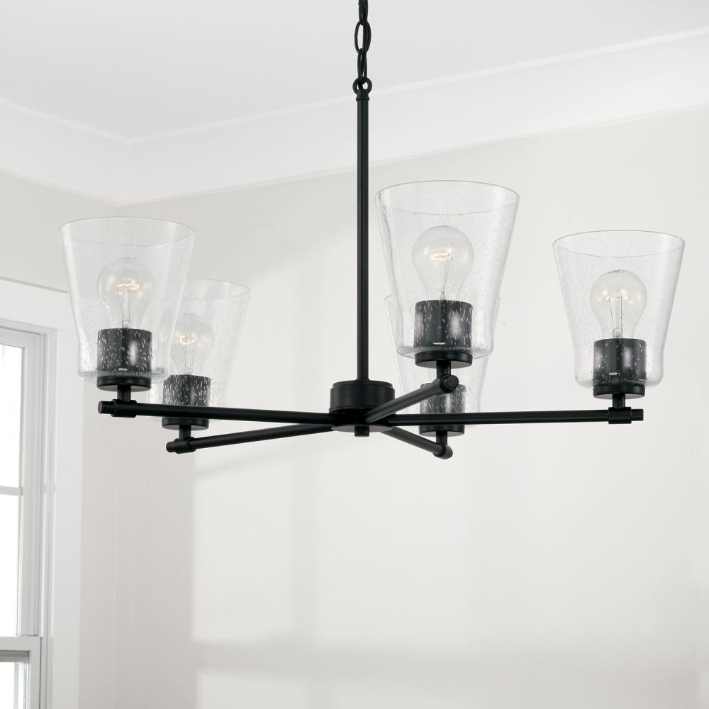 Simple and sleek, the Baker 5-Light Chandelier for Homeplace brings standout style to signature pieces. The Aged Brass finish beautifully accents the tapered seeded glass for versatility and sophistication.