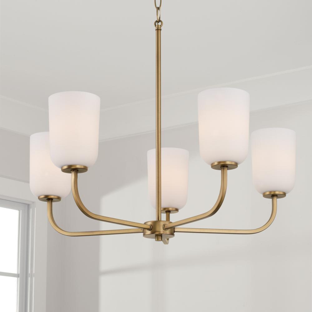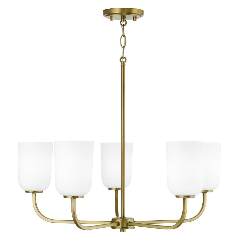 26"W x 19.75"H 5-Light Chandelier in Aged Brass with Soft White Glass