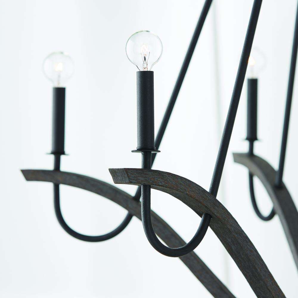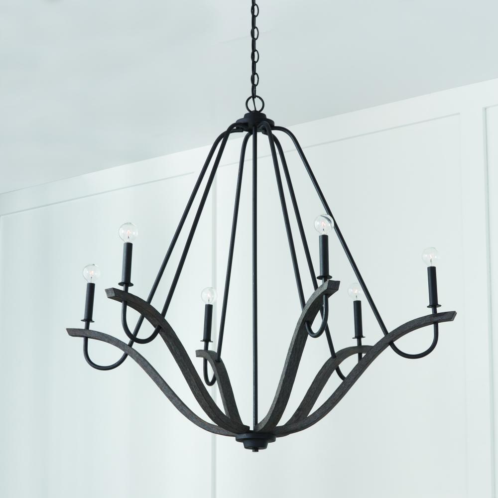 43"W x 38.5"H 6-Light Chandelier in Carbon Grey Wood and Black Iron