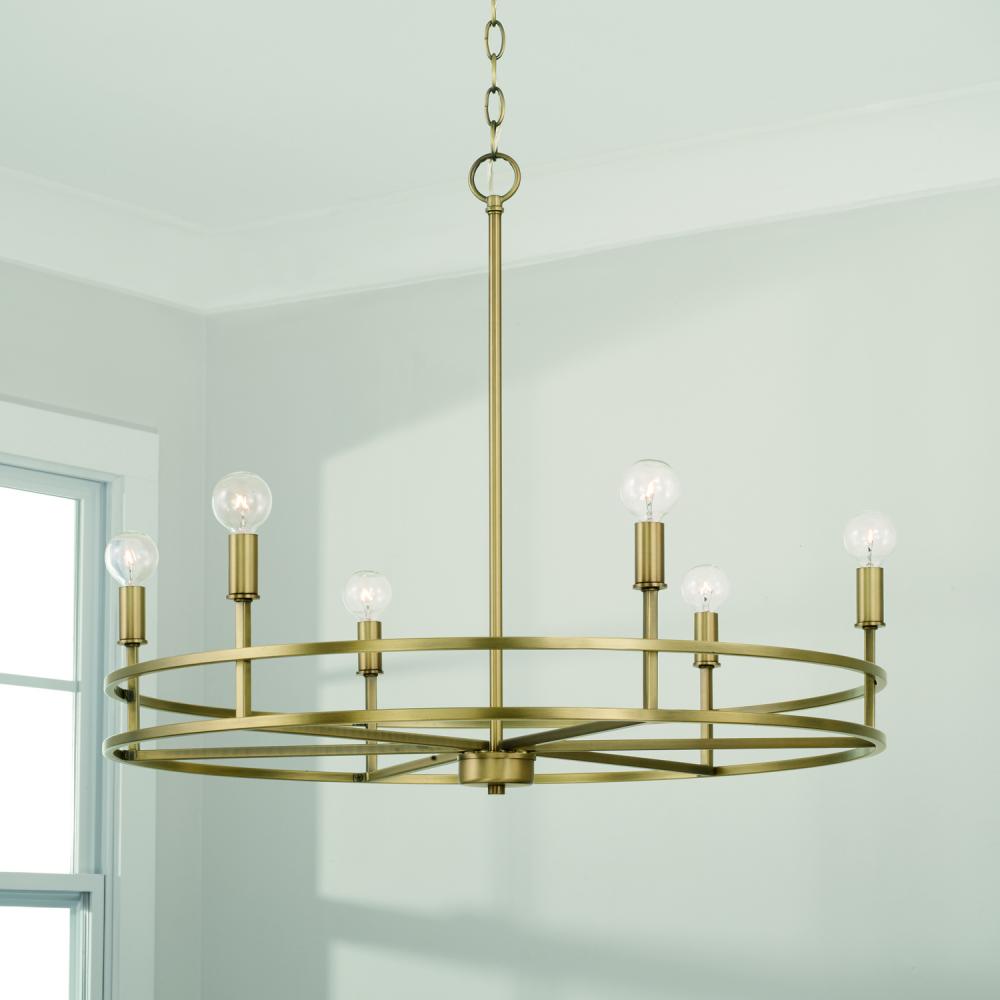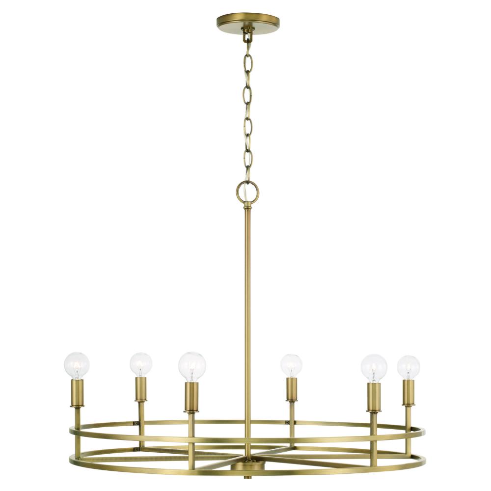 28"W x 23.75"H 6-Light Chandelier in Aged Brass