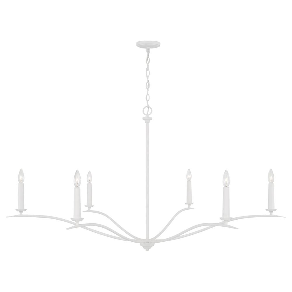 Soft curves create classic elegance in the Grady Chandelier. The round candle sleeves complement the sleek, elongated silhouette, while the Textured White finish adds dimension to any space.