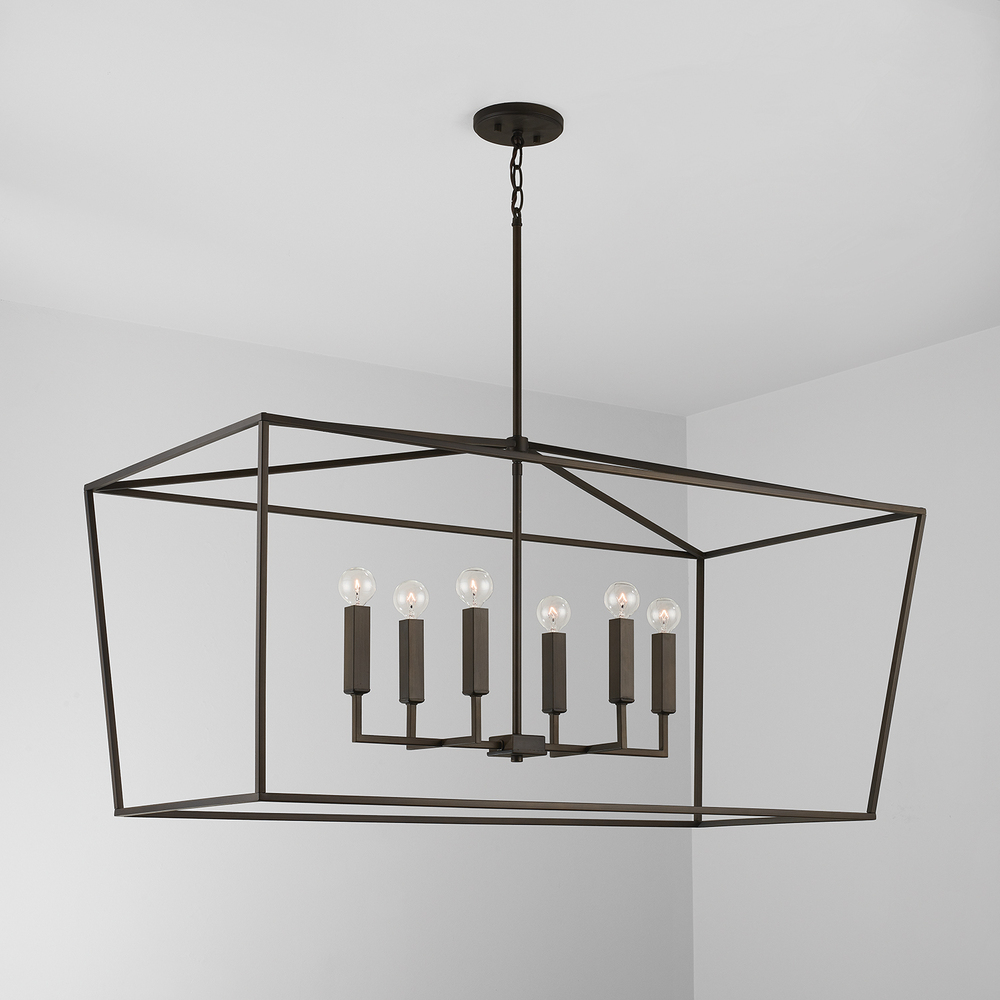 Timeless yet on-trend, the symmetrical, clean lines in this collection make a statement without being overpowering. The slim silhouette and open, lantern shape create a punctuated design. This versatile fixture is available in a wide variety of sizes and finishes.