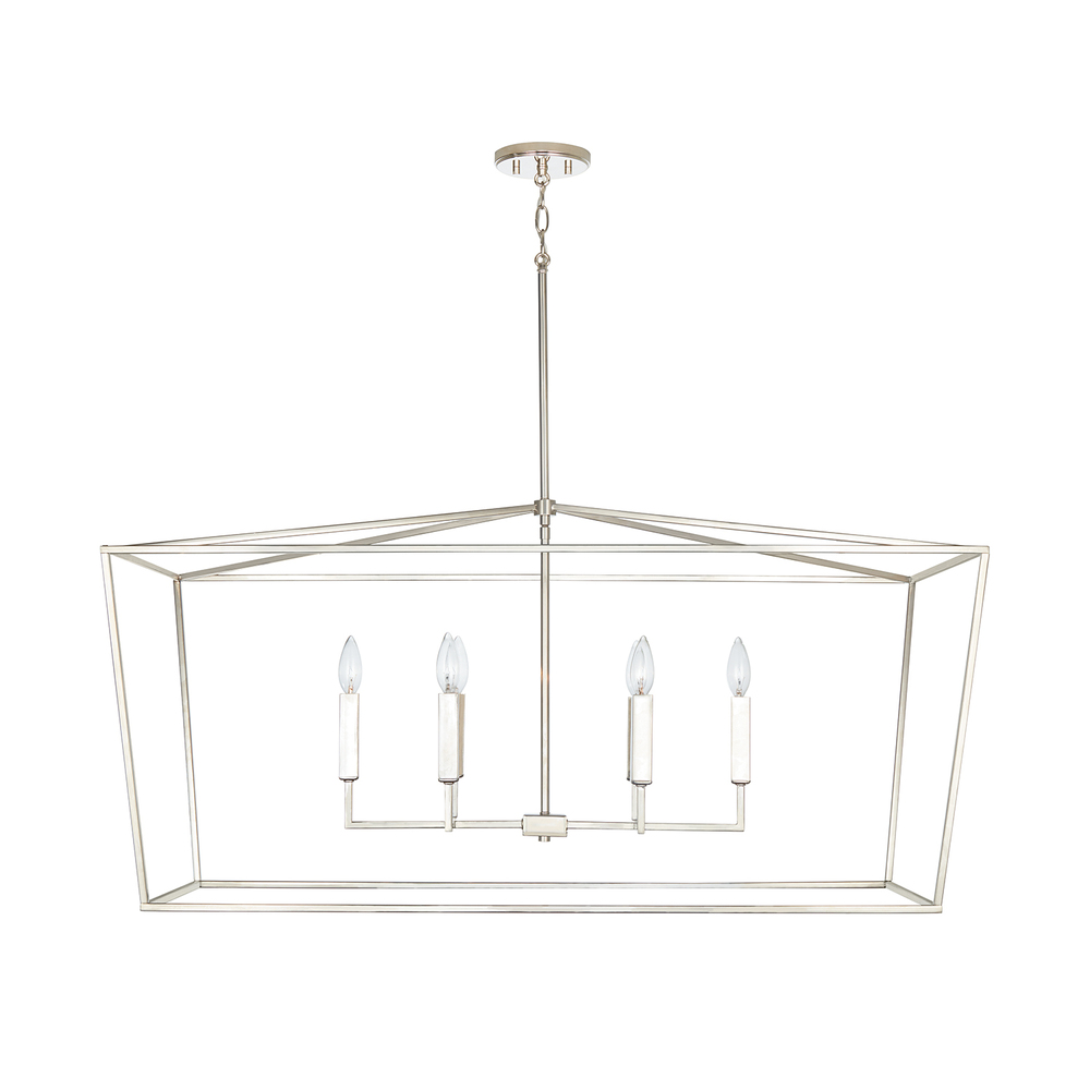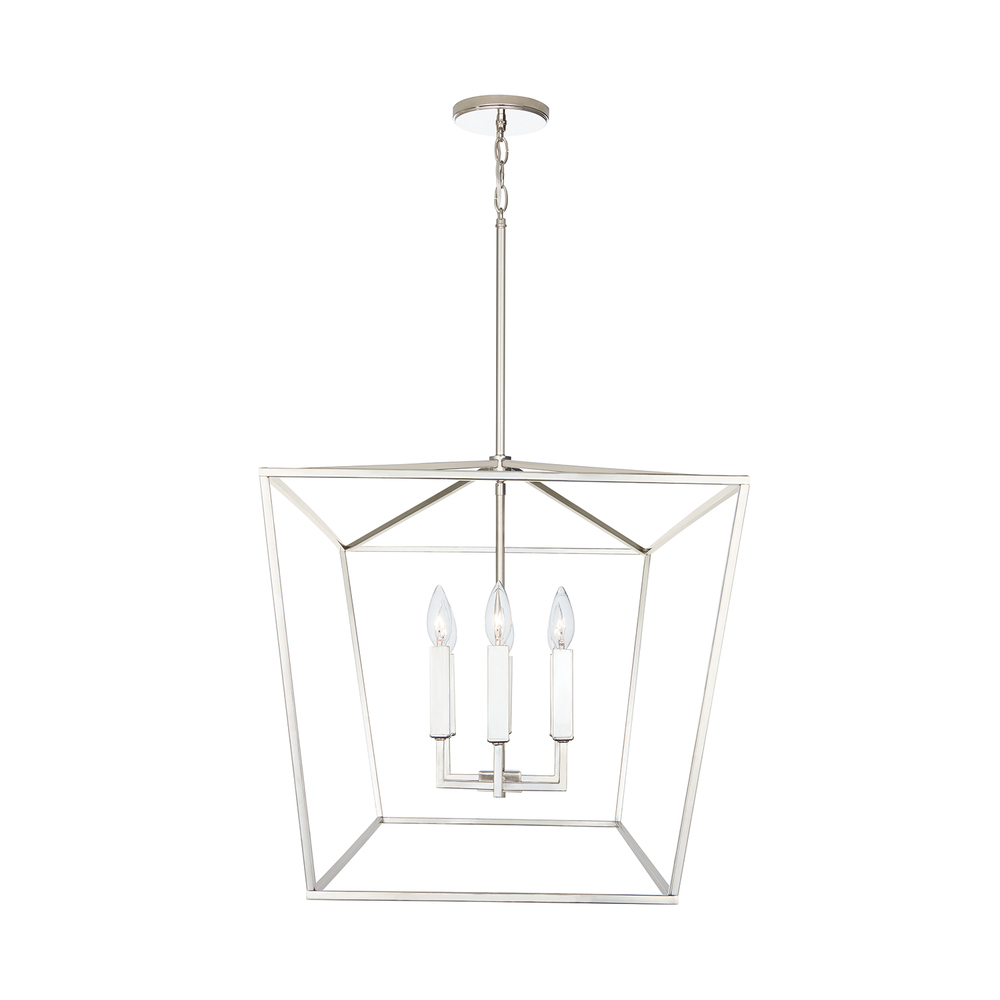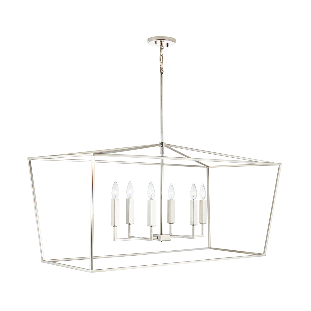 Timeless yet on-trend, the symmetrical, clean lines in this collection make a statement without being overpowering. The slim silhouette and open, lantern shape create a punctuated design. This versatile fixture is available in a wide variety of sizes and finishes.