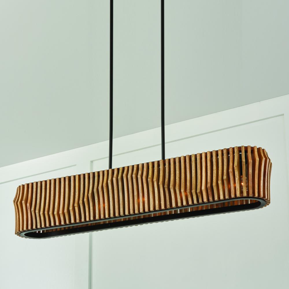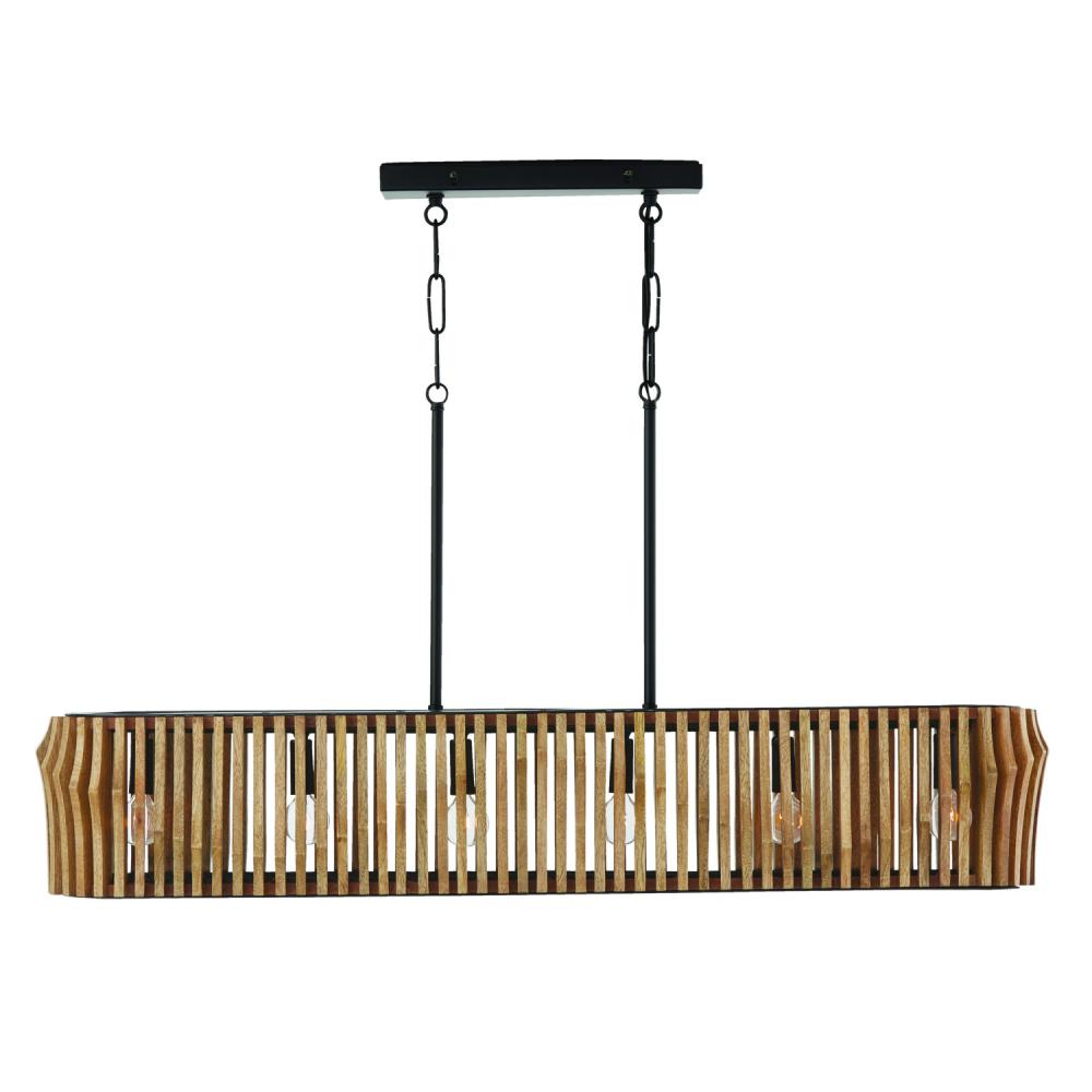 41"W x 7.5"H 6-Light Island in Light-Stained Wood and Matte Black Frame