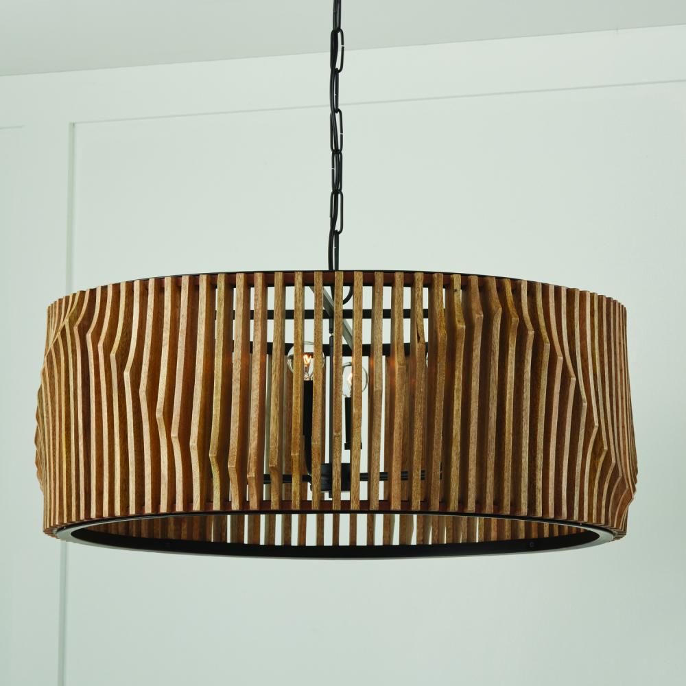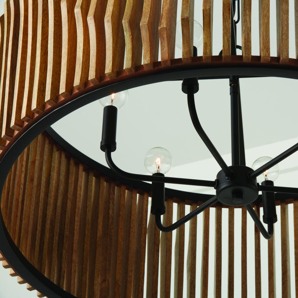 32.25"W x 14.5"H 6-Light Pendant Handcrafted of Light-Stained Wood and Matte Black Frame