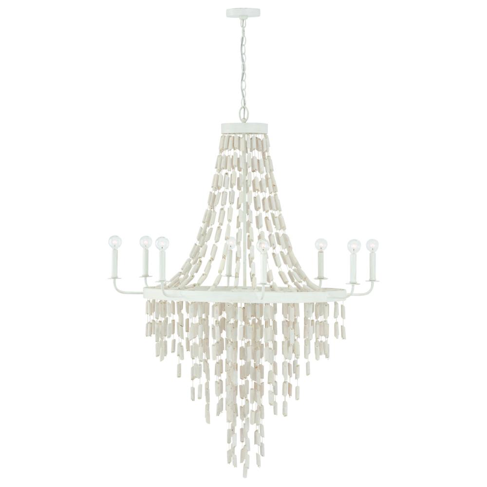40.5"W x 54.25"H 8-Light Chandelier in Organic White with White Washed Natural Eucalyptus Beads