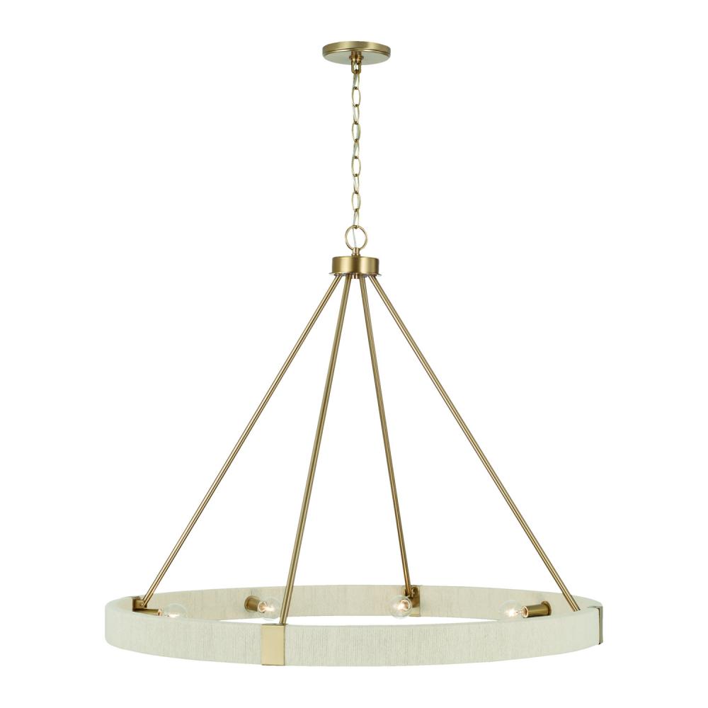 36"W x 30"H 8-Light Chandelier in Matte Brass with Bleached Natural Rope