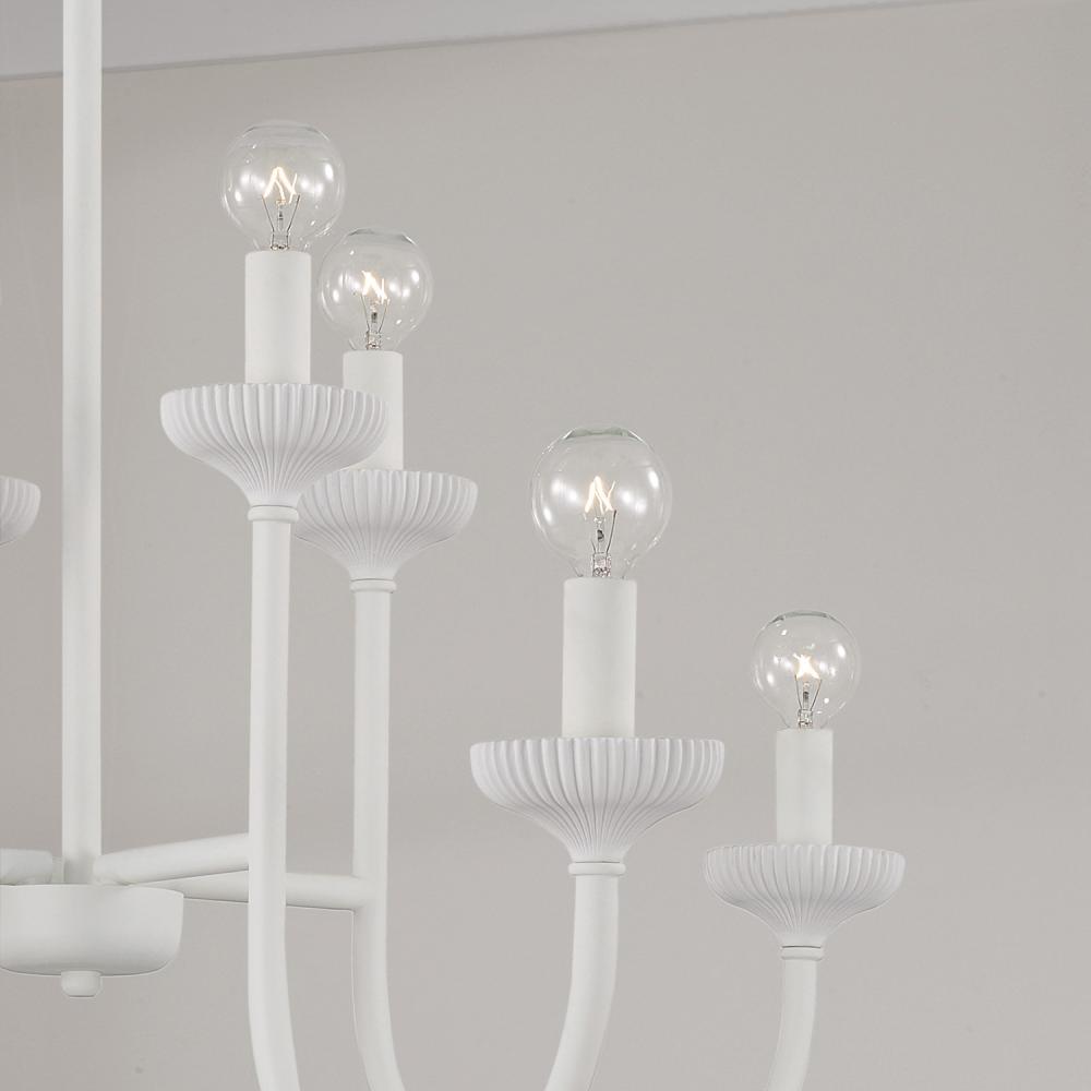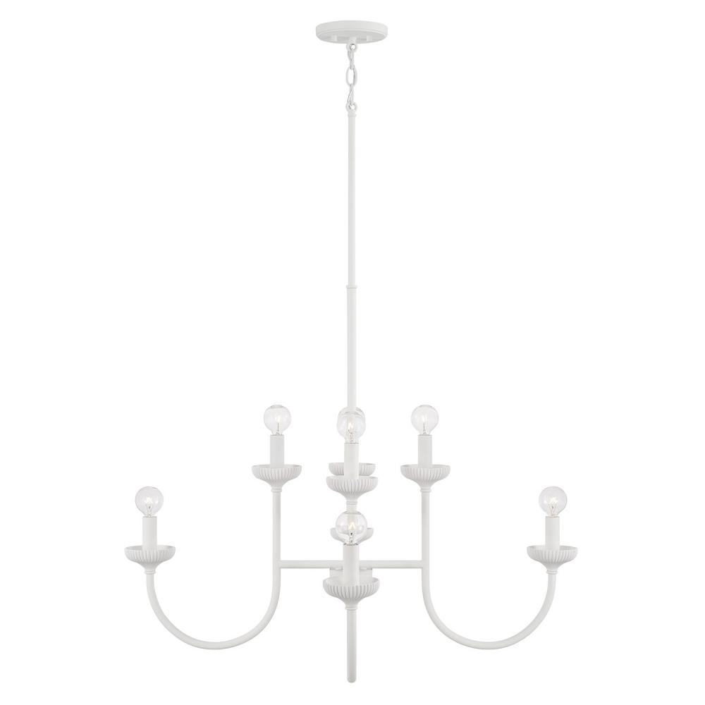 Sophisticated style and artisan details create the Mallory Chandelier. The handcrafted fluted ceramic accents bring an element of high design to the candlesticks, while the textured finish delivers all-over visual dimension.