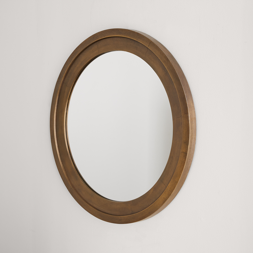 Sand-cast aluminum frame creates a unique porous bumpy texture, which is then plated and oxidized to create a one-of-a-kind finish. Available in Oxidized Brass or Oxidized Nickel. Handcrafted, variations will occur.