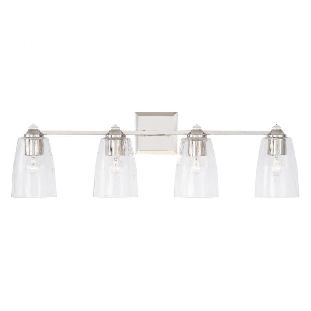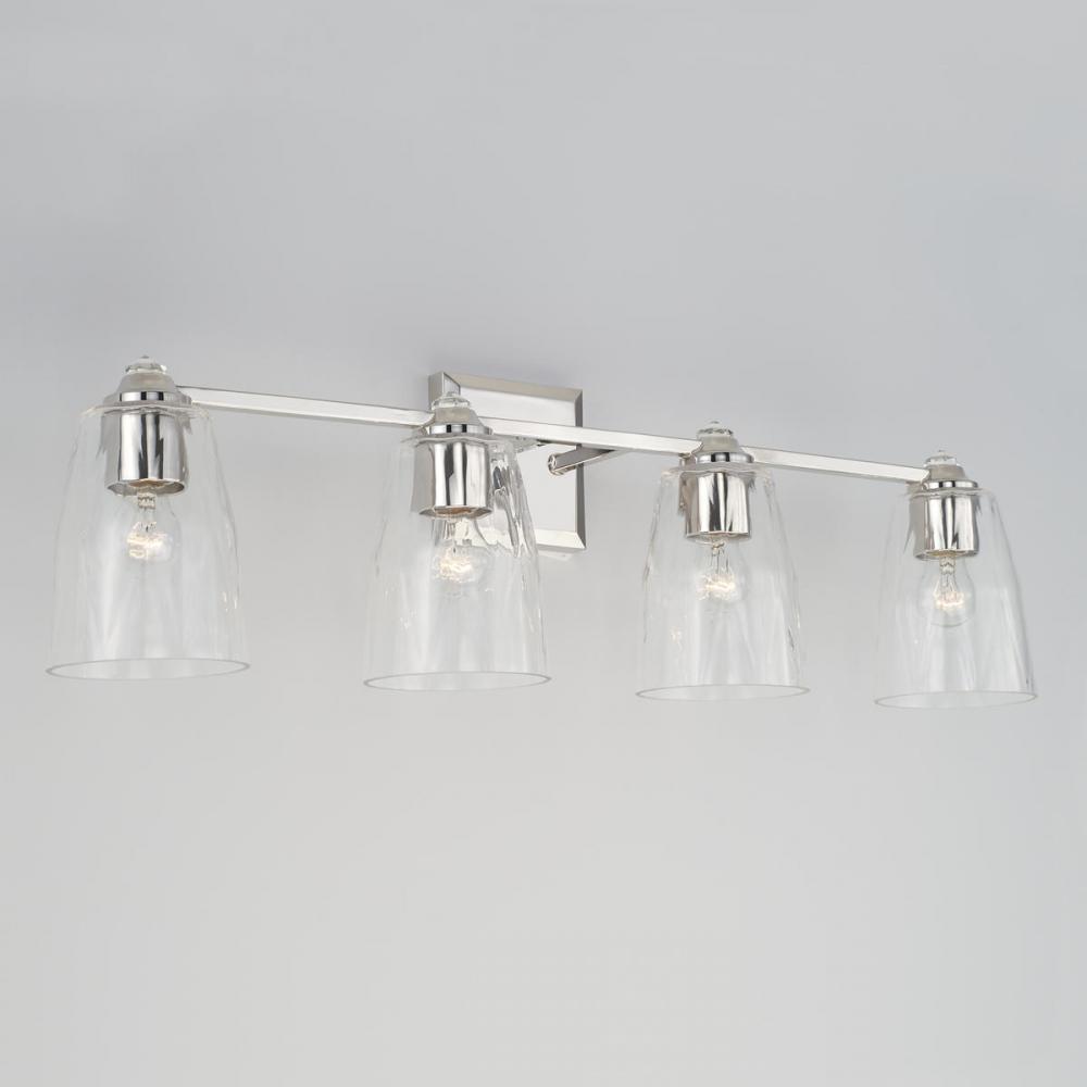 High-fashion meets high-shine with the Laurent 4-Light Vanity. The classic curves, crystal accents and reflective Polished Nickel finish give any space the look of runway glamour.