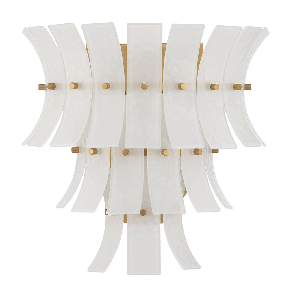 The Abigail Collection features tiered, curved panels of thick, hand-applied art glass arranged in a sculptural silhouette. Each textured glass piece is mounted to a structured metal frame and carefully shaped to diffuse light while adding depth and dimension. Whether illuminated or not, it serves as an artistic focal point—its layered form and artisanal materials creating visual impact from every angle. With handcrafted detailing and a bold, statement-making profile, the collection suits both contemporary and transitional interiors.