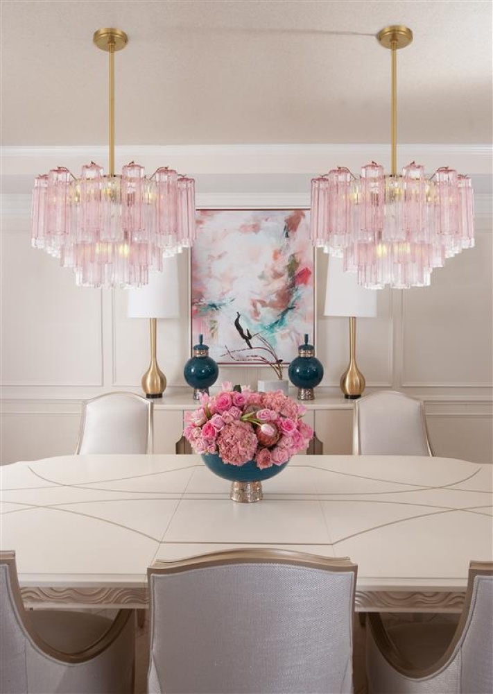 The captivating Addis Lighting Collection is a modern-day interpretation of the iconic mid-century Tronchi chandelier. Inspired by its predecessor's sleek lines and geometric shapes, the Addis features a polished Chrome or Aged Brass metal frame that exudes sophistication and style. Its unique design showcases transparent tiers of textured Tronchi glass tubes, forming a mesmerizing 5-point rounded star shape. Choose from a range of glass colors, including clear, amber, smoke, and white, or the stunning Autumn option, which features a captivating multicolor disposition of amber, clear, and smoke Tronchi glass. The Addis Lighting Collection offers various sizes and finishes, allowing you to find the perfect fit for your space while adding a touch of timeless elegance.