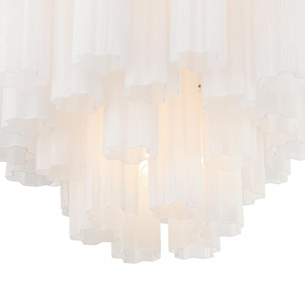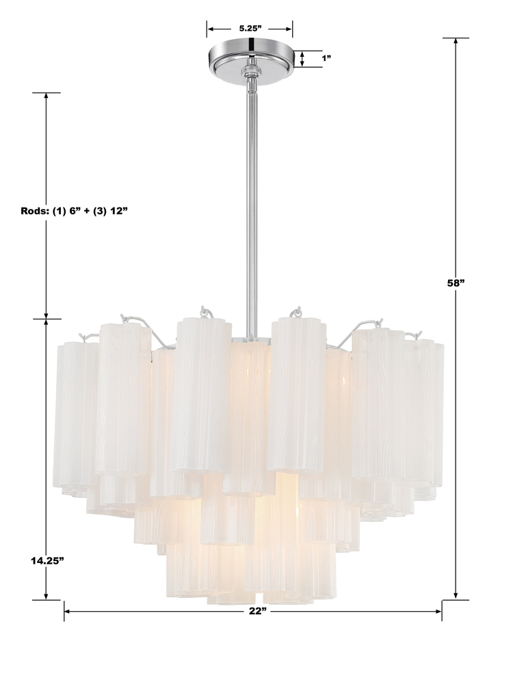 The captivating Addis Lighting Collection is a modern-day interpretation of the iconic mid-century Tronchi chandelier. Inspired by its predecessor's sleek lines and geometric shapes, the Addis features a polished Chrome or Aged Brass metal frame that exudes sophistication and style. Its unique design showcases transparent tiers of textured Tronchi glass tubes, forming a mesmerizing 5-point rounded star shape. Choose from a range of glass colors, including clear, amber, smoke, and white, or the stunning Autumn option, which features a captivating multicolor disposition of amber, clear, and smoke Tronchi glass. The Addis Lighting Collection offers various sizes and finishes, allowing you to find the perfect fit for your space while adding a touch of timeless elegance.