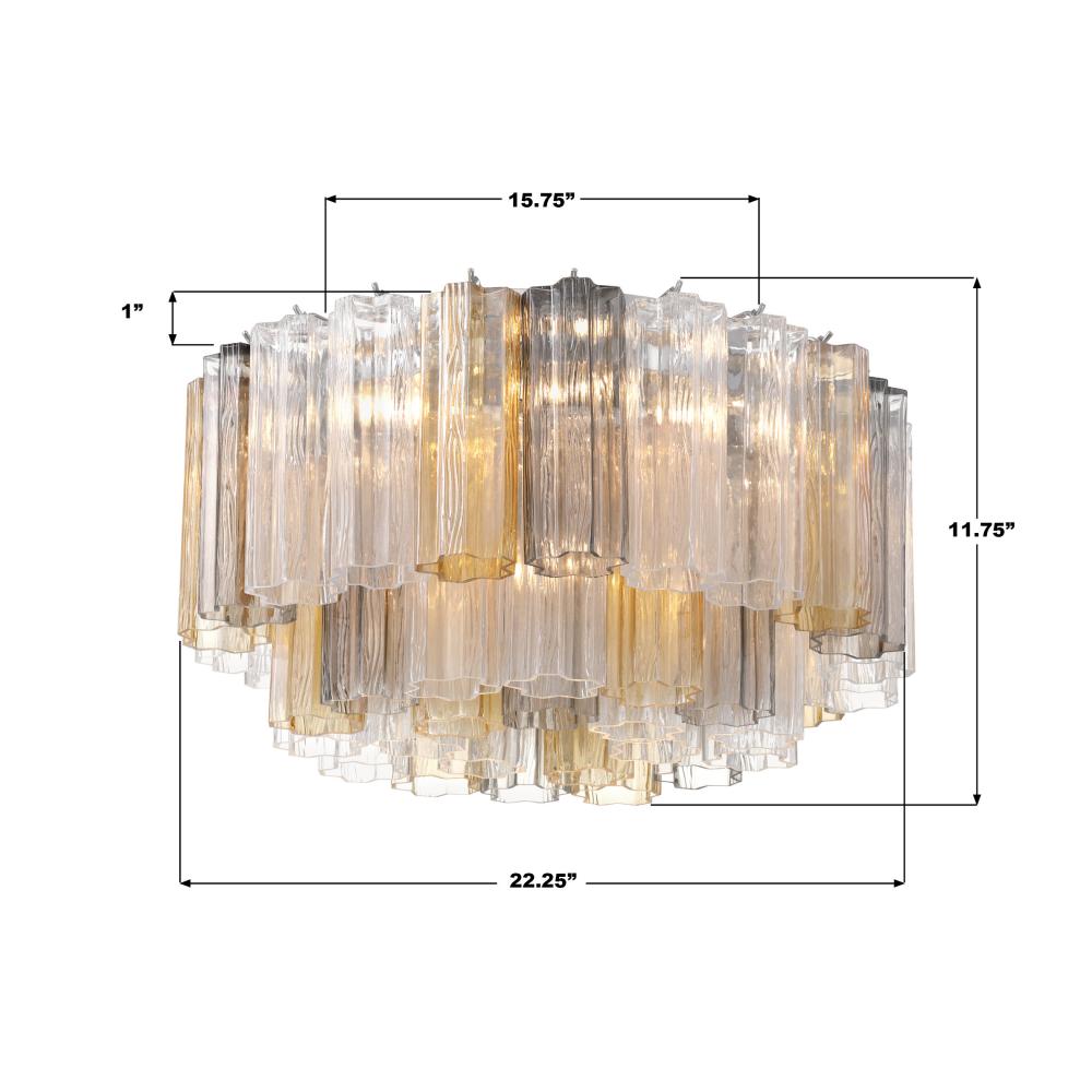 The captivating Addis Lighting Collection is a modern-day interpretation of the iconic mid-century Tronchi chandelier. Inspired by its predecessor's sleek lines and geometric shapes, the Addis features a polished Chrome or Aged Brass metal frame that exudes sophistication and style. Its unique design showcases transparent tiers of textured Tronchi glass tubes, forming a mesmerizing 5-point rounded star shape. Choose from a range of glass colors, including clear, amber, smoke, and white, or the stunning Autumn option, which features a captivating multicolor disposition of amber, clear, and smoke Tronchi glass. The Addis Lighting Collection offers various sizes and finishes, allowing you to find the perfect fit for your space while adding a touch of timeless elegance.