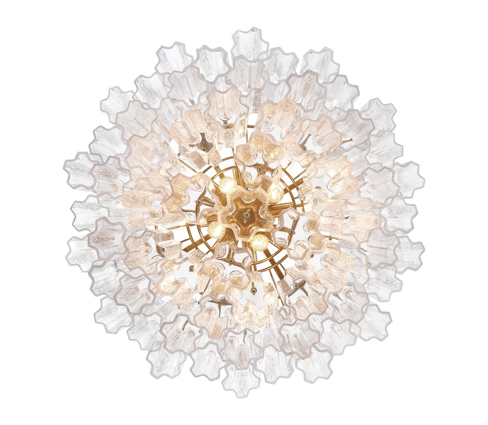 The captivating Addis Lighting Collection is a modern-day interpretation of the iconic mid-century Tronchi chandelier. Inspired by its predecessor's sleek lines and geometric shapes, the Addis features a polished Chrome or Aged Brass metal frame that exudes sophistication and style. Its unique design showcases transparent tiers of textured Tronchi glass tubes, forming a mesmerizing 5-point rounded star shape. Choose from a range of glass colors, including clear, amber, smoke, and white, or the stunning Autumn option, which features a captivating multicolor disposition of amber, clear, and smoke Tronchi glass. The Addis Lighting Collection offers various sizes and finishes, allowing you to find the perfect fit for your space while adding a touch of timeless elegance.