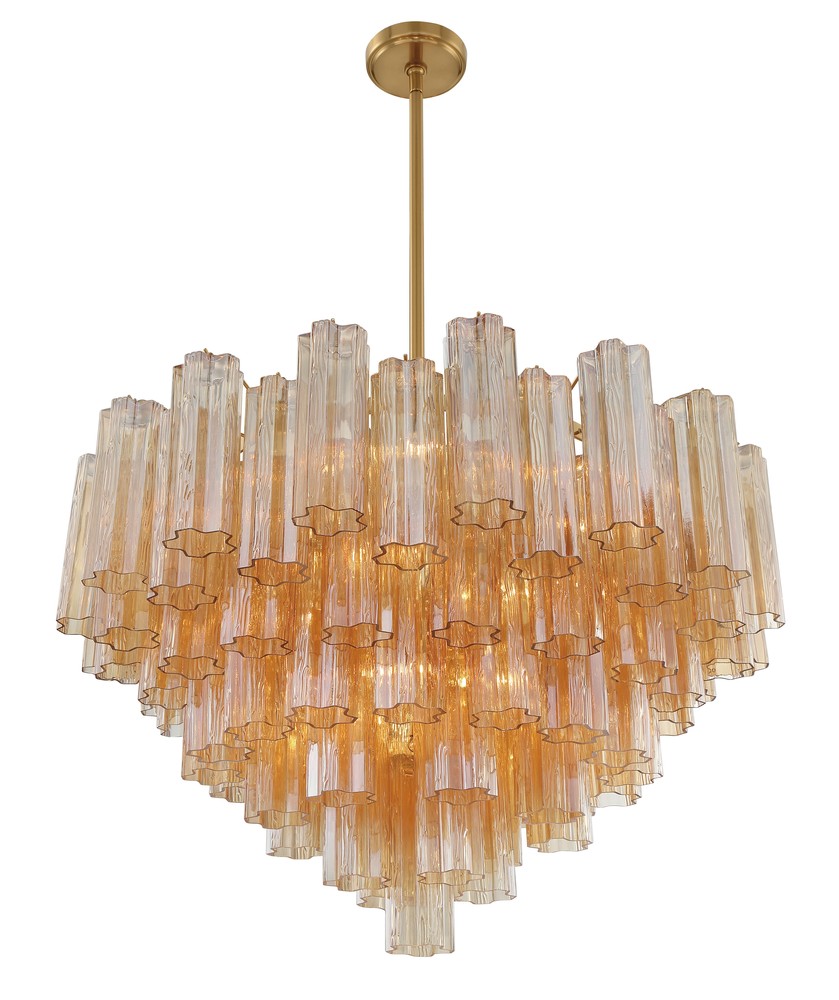 The captivating Addis Lighting Collection is a modern-day interpretation of the iconic mid-century Tronchi chandelier. Inspired by its predecessor's sleek lines and geometric shapes, the Addis features a polished Chrome or Aged Brass metal frame that exudes sophistication and style. Its unique design showcases transparent tiers of textured Tronchi glass tubes, forming a mesmerizing 5-point rounded star shape. Choose from a range of glass colors, including clear, amber, smoke, and white, or the stunning Autumn option, which features a captivating multicolor disposition of amber, clear, and smoke Tronchi glass. The Addis Lighting Collection offers various sizes and finishes, allowing you to find the perfect fit for your space while adding a touch of timeless elegance.