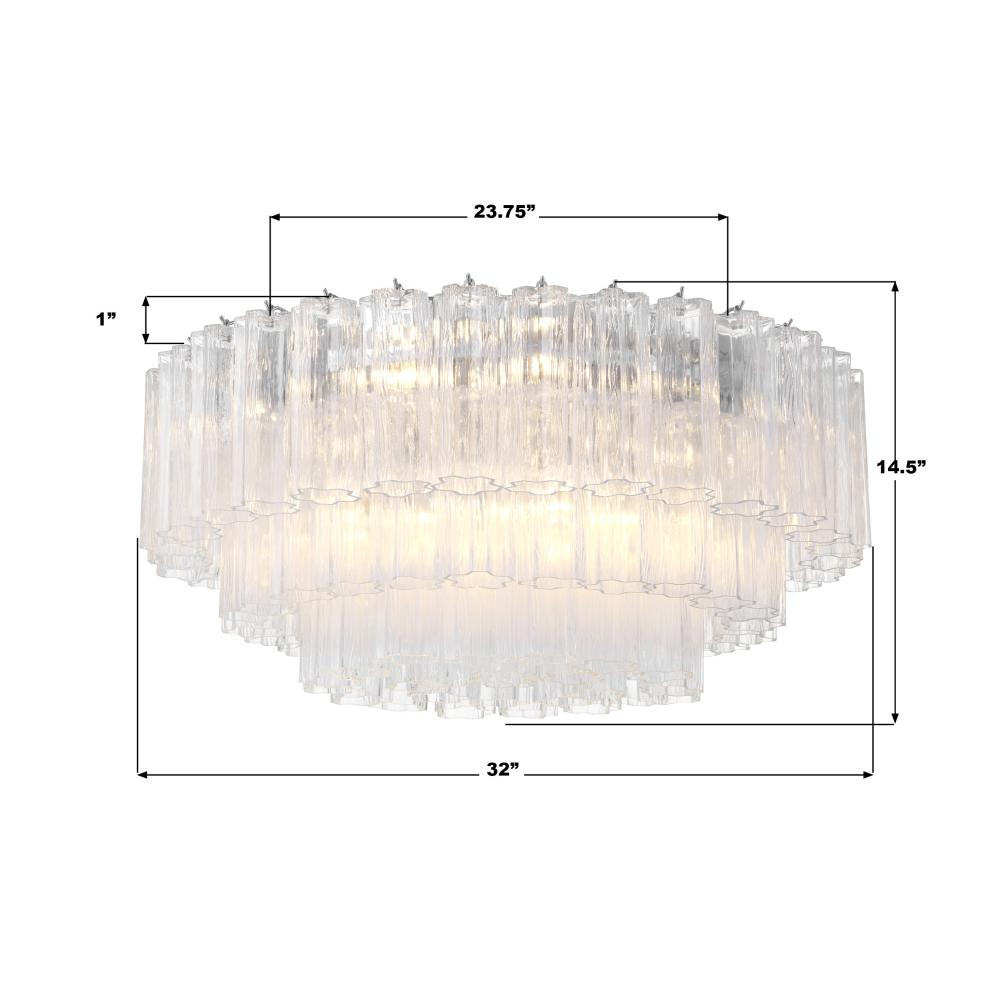 The captivating Addis Lighting Collection is a modern-day interpretation of the iconic mid-century Tronchi chandelier. Inspired by its predecessor's sleek lines and geometric shapes, the Addis features a polished Chrome or Aged Brass metal frame that exudes sophistication and style. Its unique design showcases transparent tiers of textured Tronchi glass tubes, forming a mesmerizing 5-point rounded star shape. Choose from a range of glass colors, including clear, amber, smoke, and white, or the stunning Autumn option, which features a captivating multicolor disposition of amber, clear, and smoke Tronchi glass. The Addis Lighting Collection offers various sizes and finishes, allowing you to find the perfect fit for your space while adding a touch of timeless elegance.
