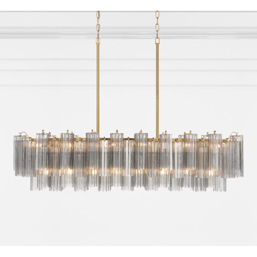 The captivating Addis Lighting Collection is a modern-day interpretation of the iconic mid-century Tronchi chandelier. Inspired by its predecessor's sleek lines and geometric shapes, the Addis features a polished Chrome or Aged Brass metal frame that exudes sophistication and style. Its unique design showcases transparent tiers of textured Tronchi glass tubes, forming a mesmerizing 5-point rounded star shape. Choose from a range of glass colors, including clear, amber, smoke, and white, or the stunning Autumn option, which features a captivating multicolor disposition of amber, clear, and smoke Tronchi glass. The Addis Lighting Collection offers various sizes and finishes, allowing you to find the perfect fit for your space while adding a touch of timeless elegance.