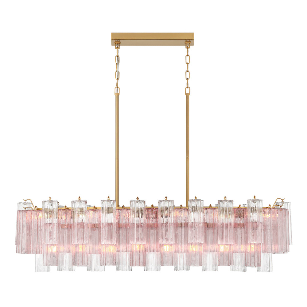 The captivating Addis Lighting Collection is a modern-day interpretation of the iconic mid-century Tronchi chandelier. Inspired by its predecessor's sleek lines and geometric shapes, the Addis features a polished Chrome or Aged Brass metal frame that exudes sophistication and style. Its unique design showcases transparent tiers of textured Tronchi glass tubes, forming a mesmerizing 5-point rounded star shape. Choose from a range of glass colors, including clear, amber, smoke, and white, or the stunning Autumn option, which features a captivating multicolor disposition of amber, clear, and smoke Tronchi glass. The Addis Lighting Collection offers various sizes and finishes, allowing you to find the perfect fit for your space while adding a touch of timeless elegance.