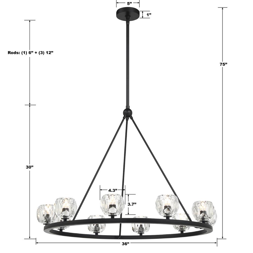 Finely crafted with great attention to detail, the Aragon Collection is a mix of industrial meets modern style. The Matte Black minimalist look includes rods attached to a large frame, facet-cut crystal globes and packed-in G9 Dimmable LED Bulbs, (rated at 3000K, 400 lumens and CRI 80). This functionally timeless fixture can be hung with upward or downward-facing light giving you the flexibility to choose how you would like to set the mood of the room.