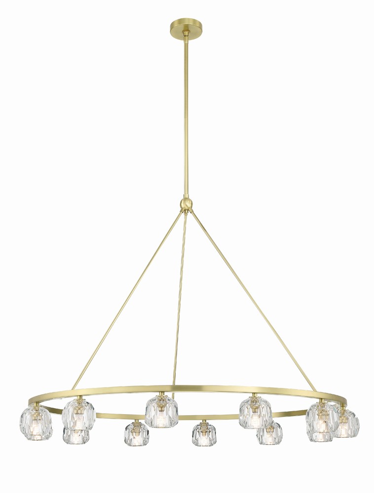 Finely crafted with great attention to detail, the Aragon Collection is a mix of industrial meets modern style. The Soft Brass minimalist look includes rods attached to a large frame, facet-cut crystal globes and packed-in G9 Dimmable LED Bulbs, (rated at 3000K, 400 lumens and CRI 80). This functionally timeless fixture can be hung with upward or downward-facing light giving you the flexibility to choose how you would like to set the mood of the room.