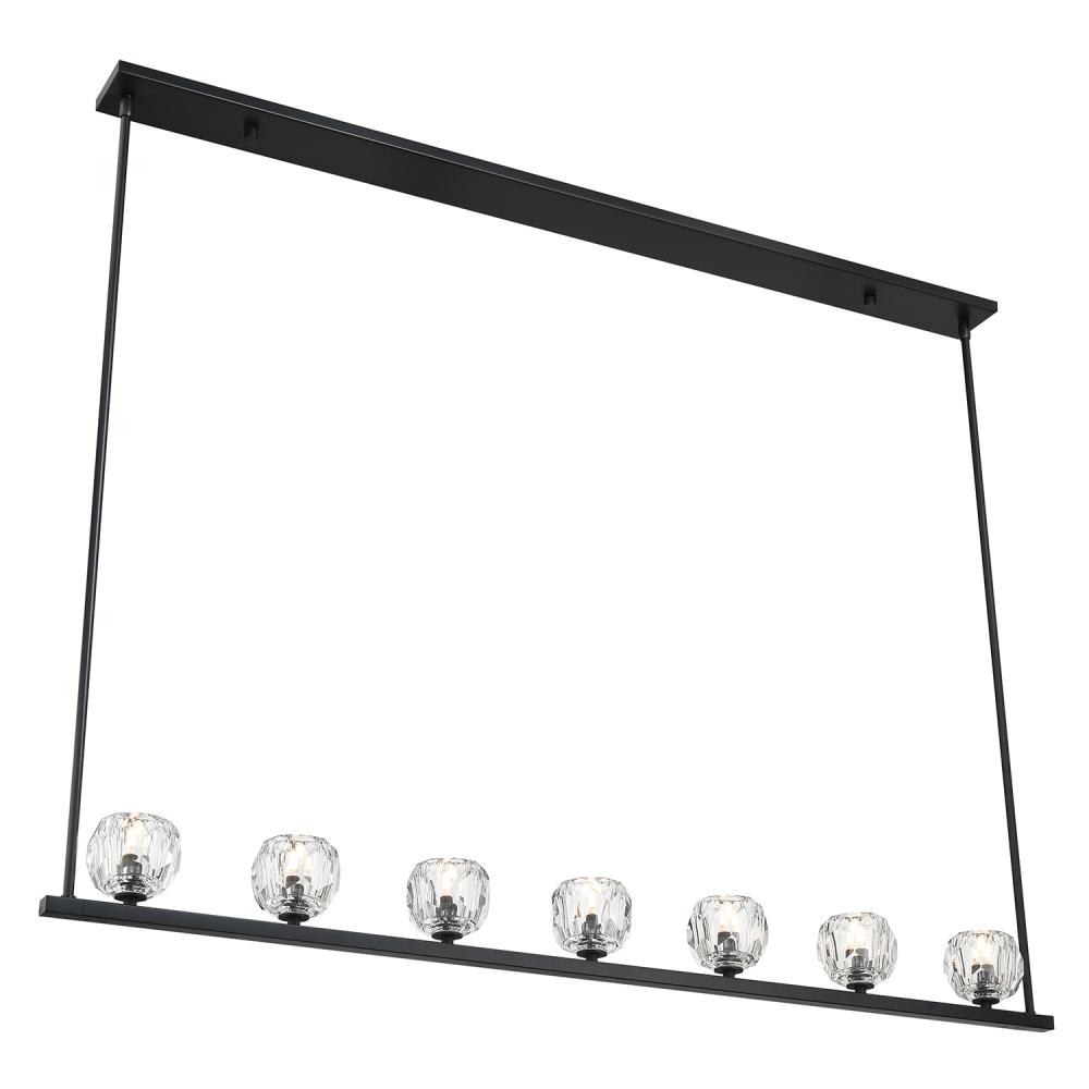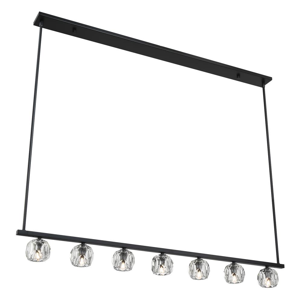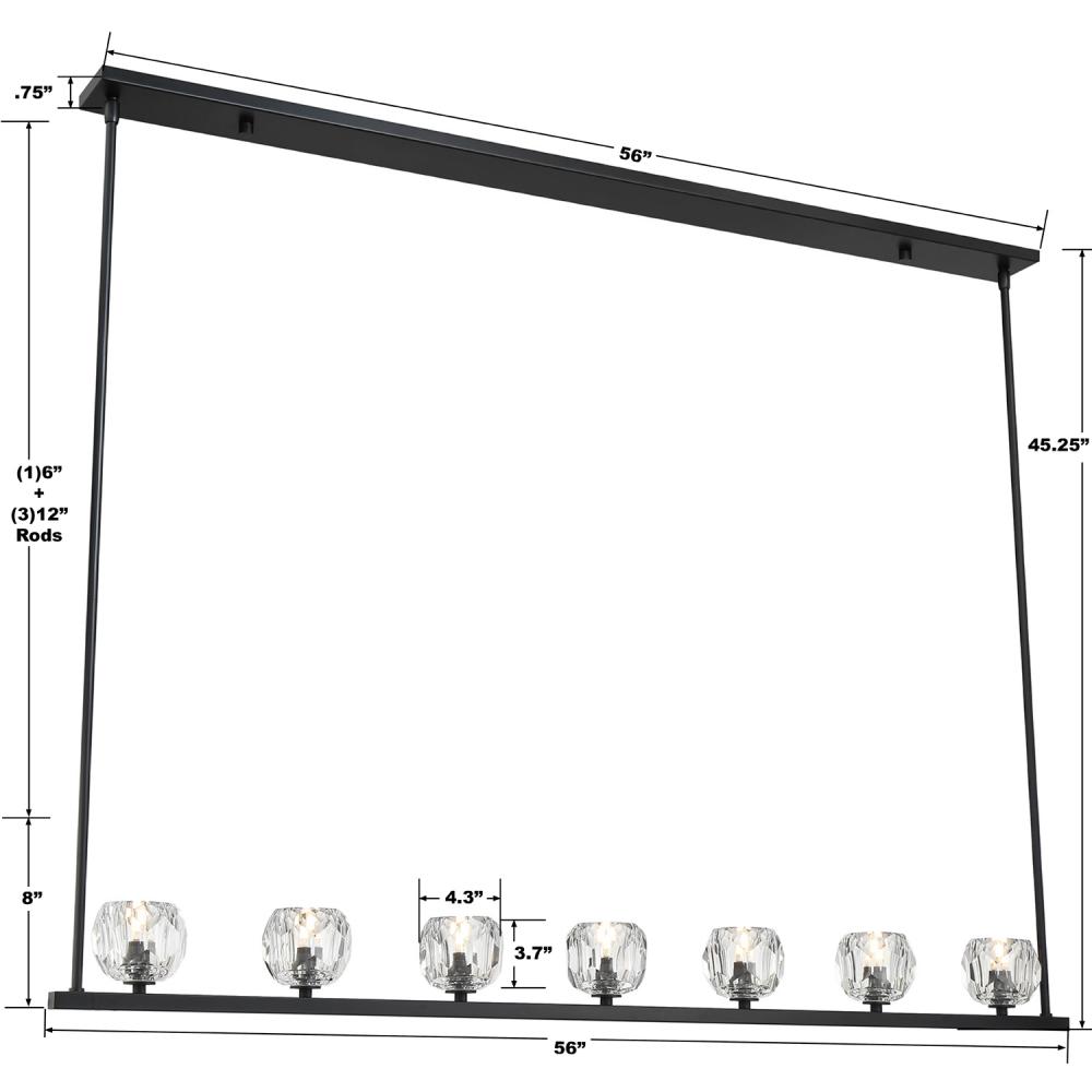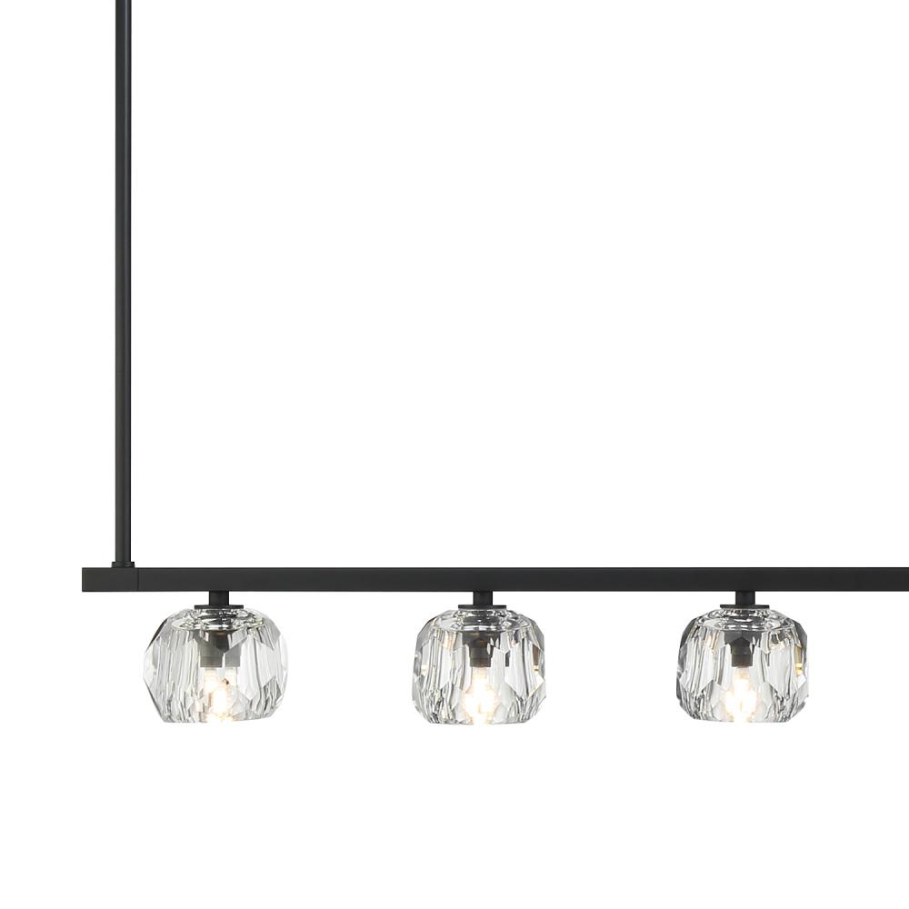Finely crafted with great attention to detail, the Aragon Collection is a mix of industrial meets modern style. The Matte Black minimalist look includes rods attached to a large frame, facet-cut crystal globes and packed-in G9 Dimmable LED Bulbs, (rated at 3000K, 400 lumens and CRI 80). This functionally timeless fixture can be hung with upward or downward-facing light giving you the flexibility to choose how you would like to set the mood of the room.