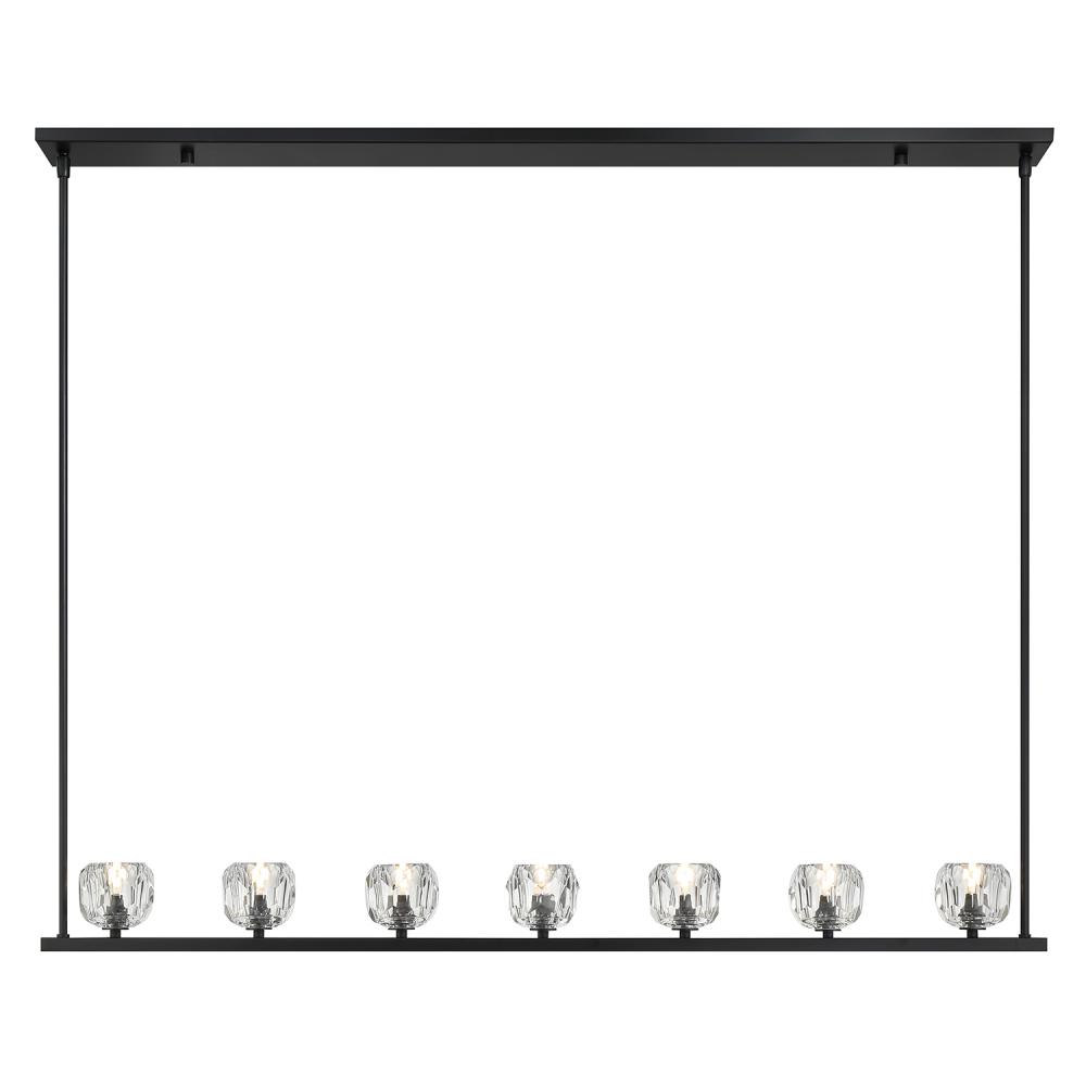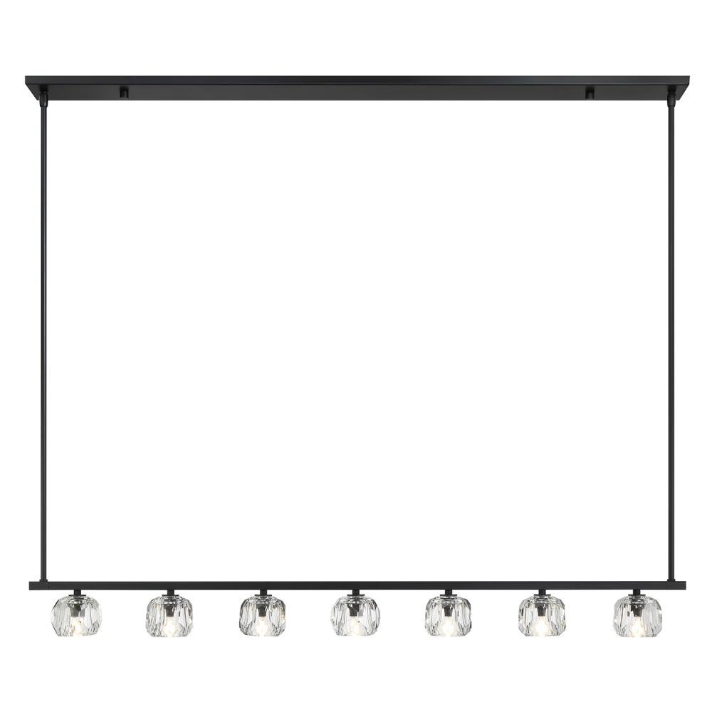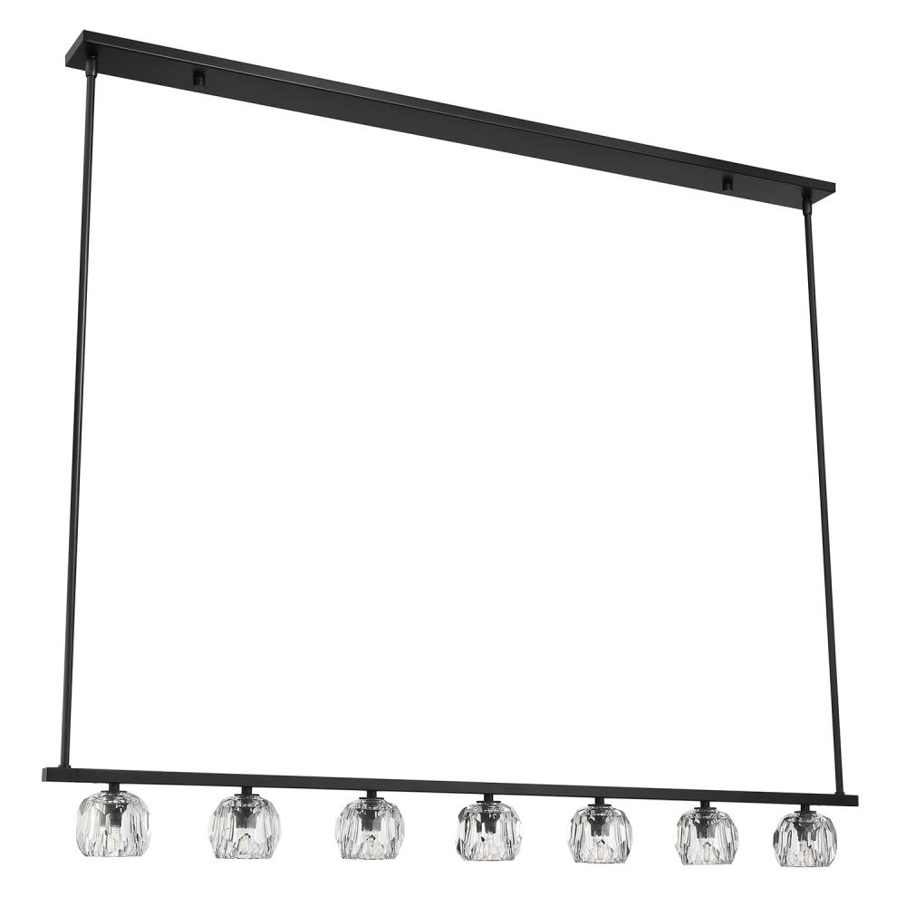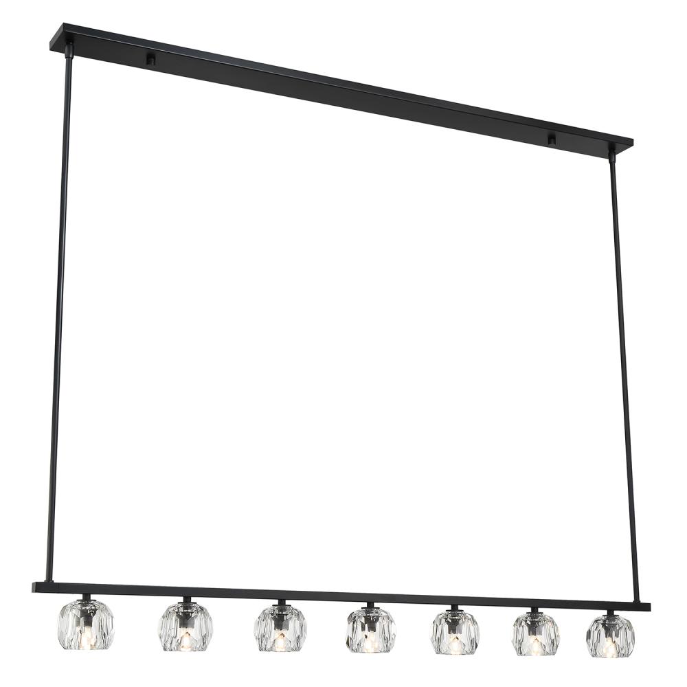 Finely crafted with great attention to detail, the Aragon Collection is a mix of industrial meets modern style. The Matte Black minimalist look includes rods attached to a large frame, facet-cut crystal globes and packed-in G9 Dimmable LED Bulbs, (rated at 3000K, 400 lumens and CRI 80). This functionally timeless fixture can be hung with upward or downward-facing light giving you the flexibility to choose how you would like to set the mood of the room.