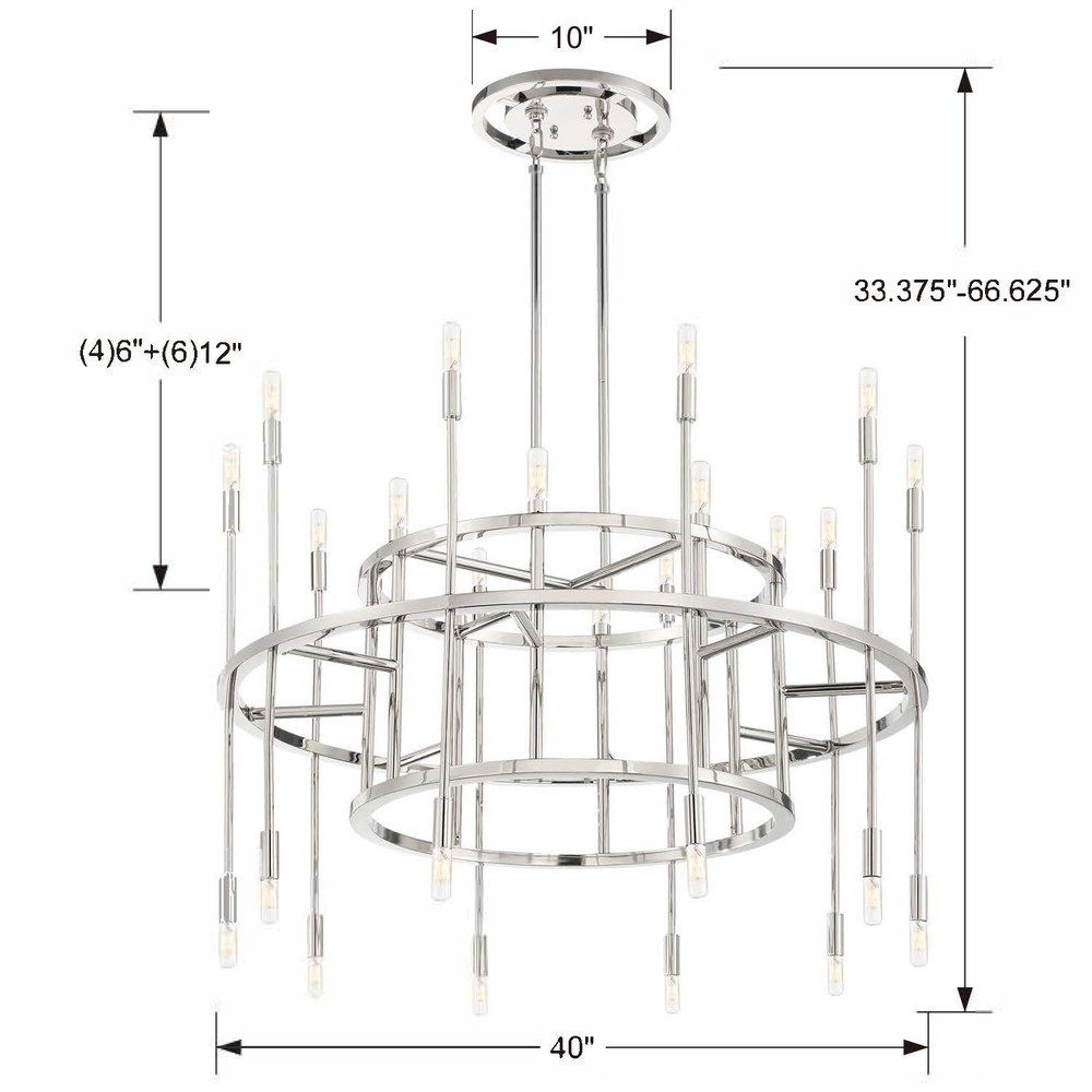 The architectural elements from the Aries collection defies the traditional chandelier. The beauty is from underneath, as the mix of the vertical lines in conjunction with the round ring create a harmonious juxtaposition.
