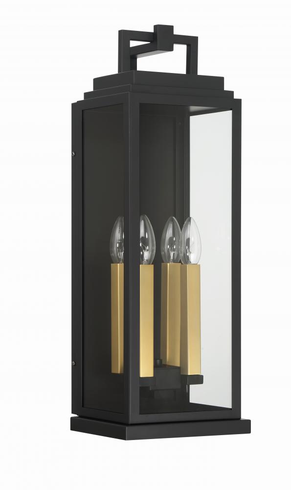 The Aspen Collection features clear glass panels and a sleek black metal frame, blending classic charm with contemporary style. The elongated lantern design showcases a flat geometric arm securely fastened to a rectangular top, creating a striking visual effect. A unique feature of the Aspen Collection is the versatile candle sleeves that ship with both white and gold finishes, allowing you to customize the look to suit your aesthetic preferences. With the Aspen Collection, you can transform your outdoor space into a welcoming oasis of timeless beauty, making a lasting impression on all who visit your home.
