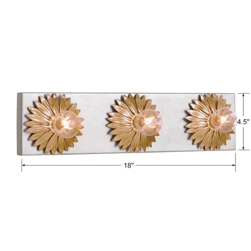 Wrought iron leaf assemblies deliver a stunning, unique, and functional vanity light. The tailored elegance of the shimmering metallic florals is perfect for a transitional home though versatile enough to be incorporated into any modern design. While ideal for a bathroom, it can be used anywhere you want to add a bit of glam.