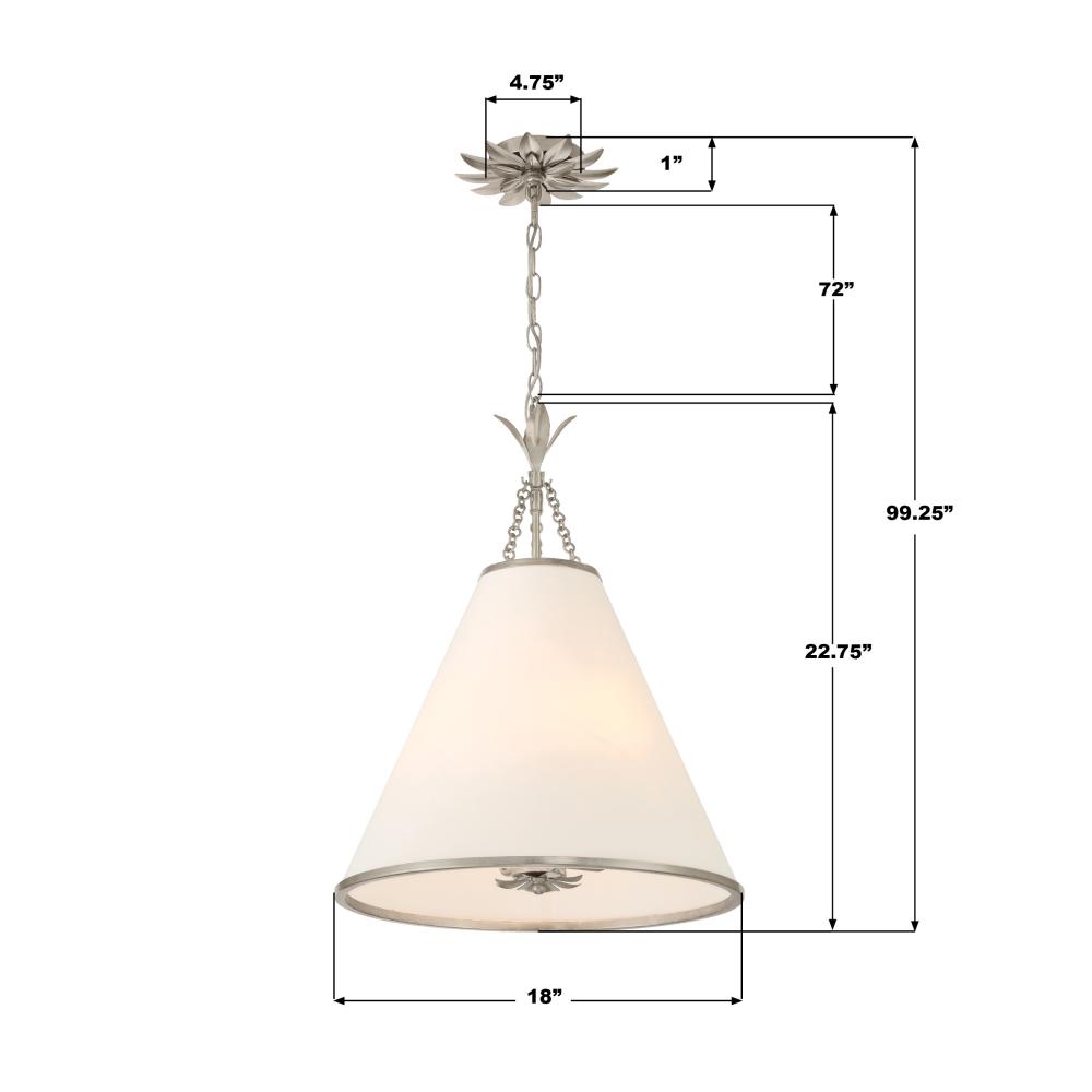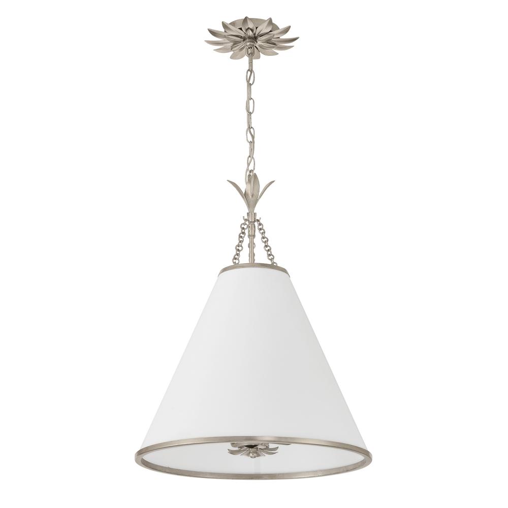 White silk cone shade dressed with delicate metal leaf accents.